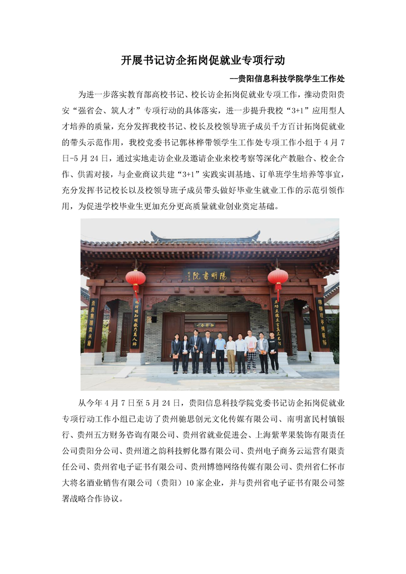 开展书记访企拓岗促就业专项行动--Beat365唯一官方网站学生工作处