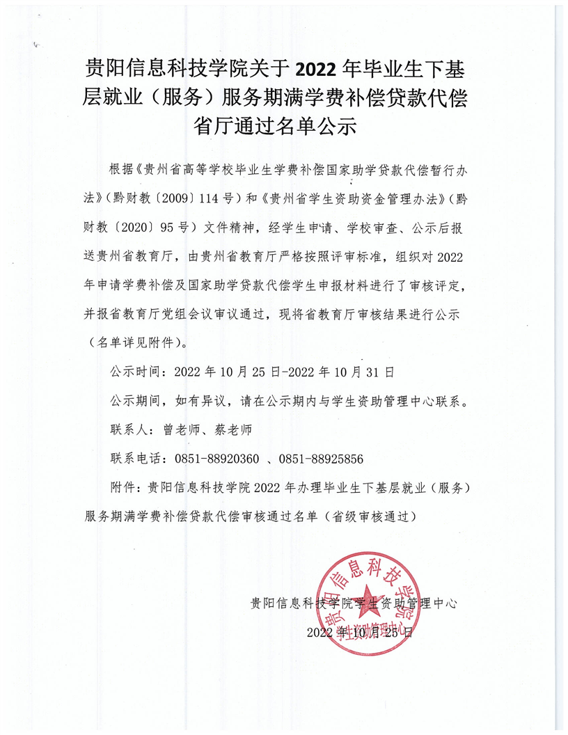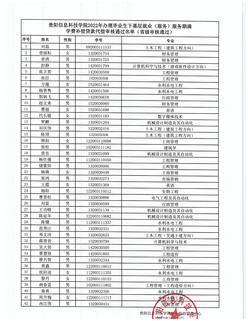 Beat365唯一官方网站关于2022年毕业生下基层就业(服务)服务期满学费补偿贷款代偿省厅通过名单公示