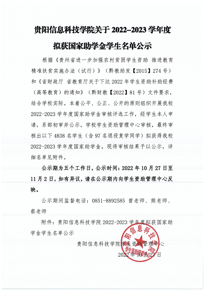 Beat365唯一官方网站关于2022-2023学年拟获国家助学金学生名单公示