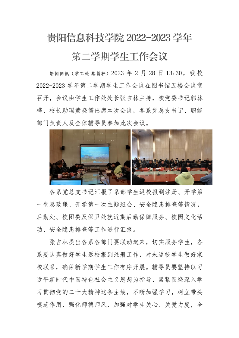 2022-2023学年春季学期2月Beat365唯一官方网站学生工作会议
