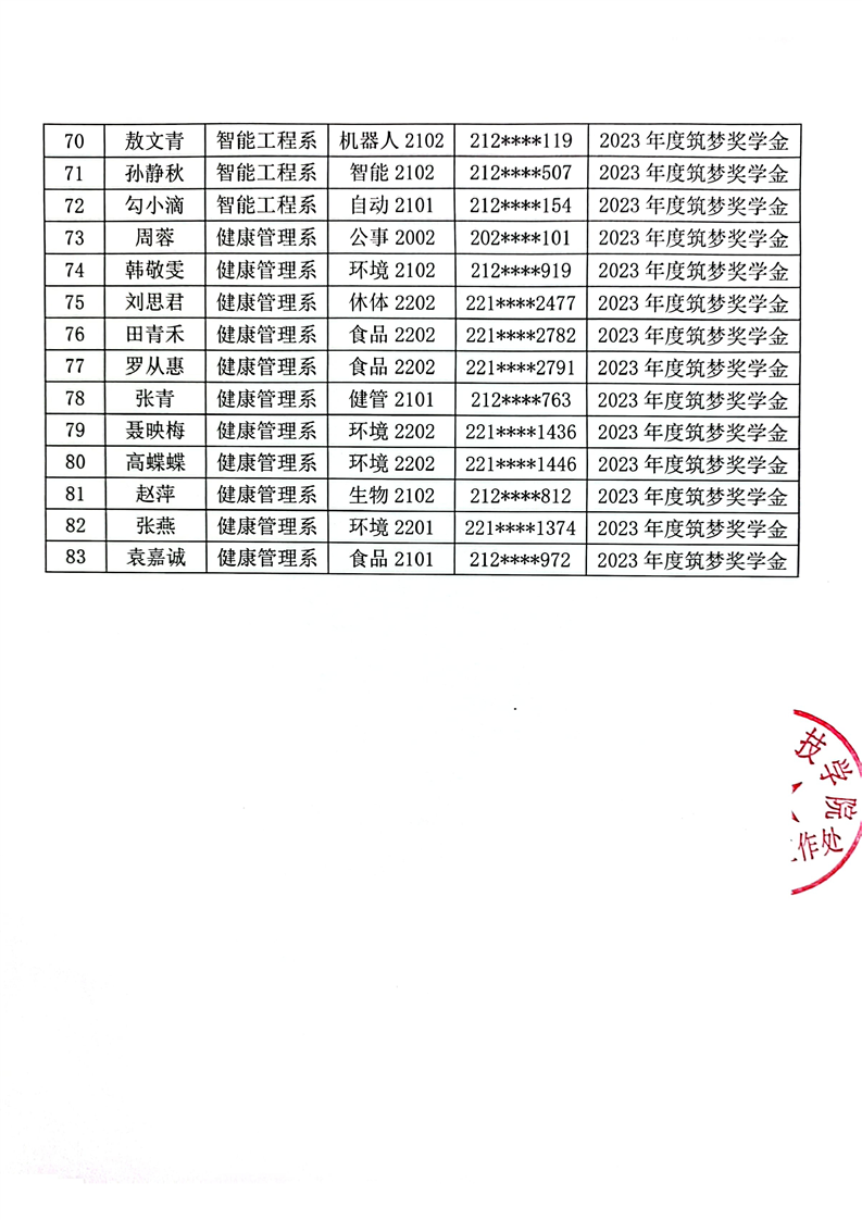 Beat365唯一官方网站关于2023年度拟获筑梦奖学金学生名单公示