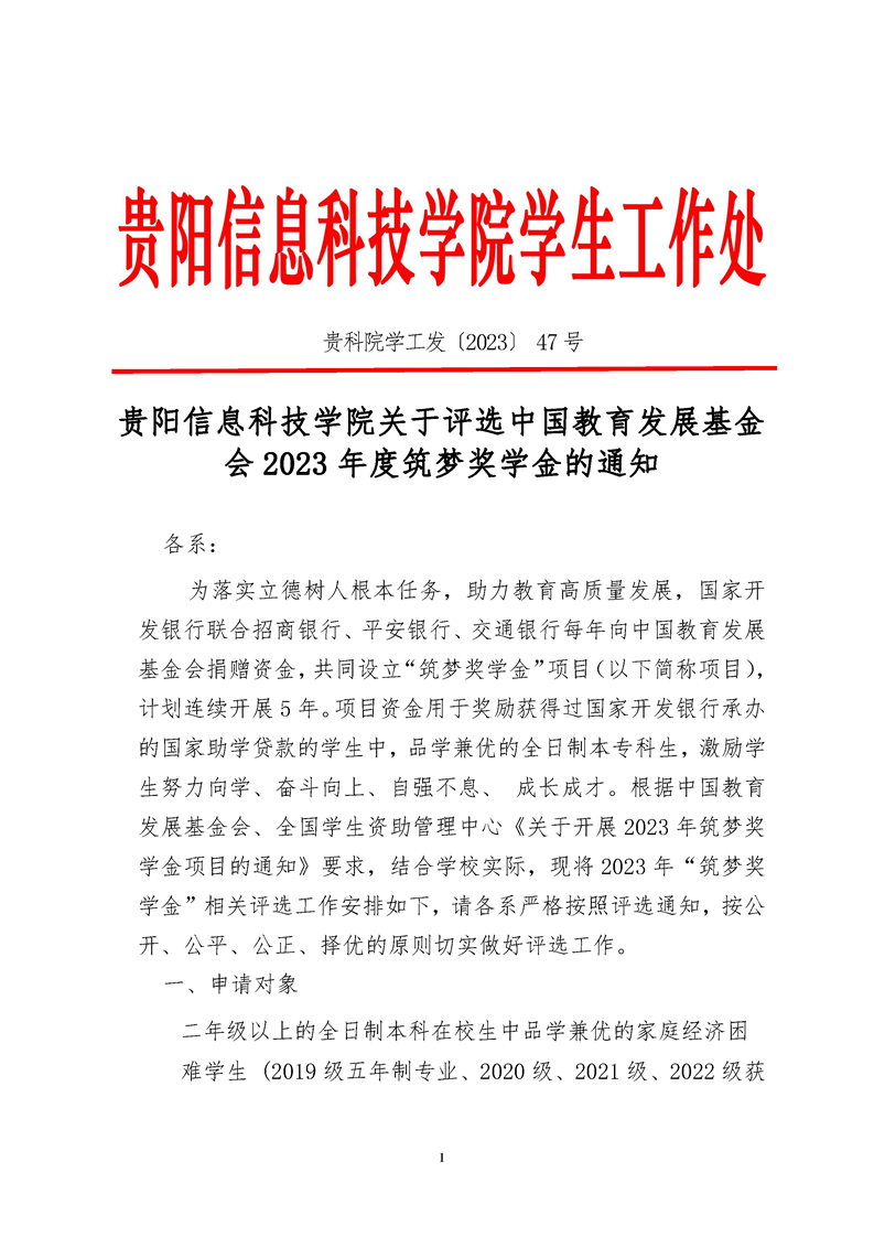 关于评选中国教育发展基金会2023年度筑梦奖学金的通知