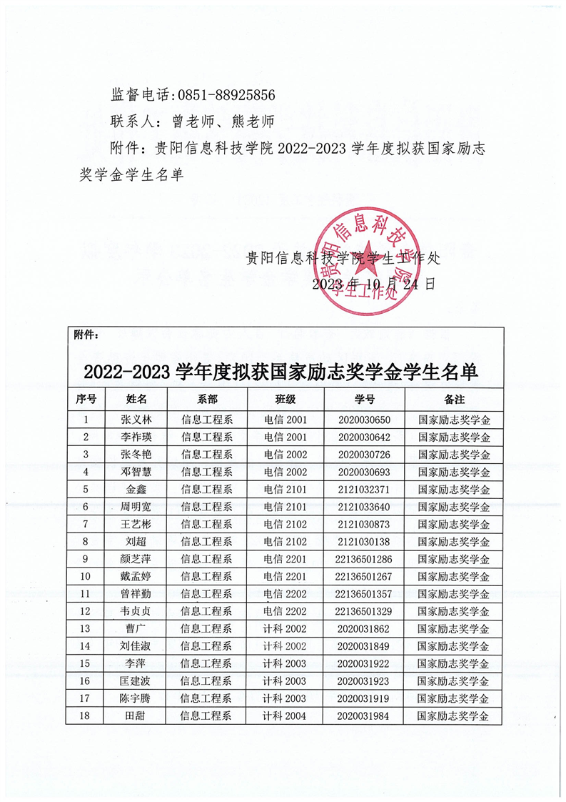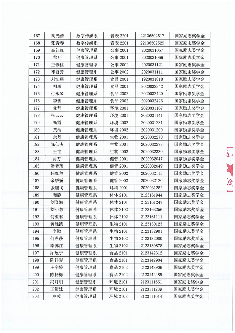 关于Beat365唯一官方网站2022-2023学年度拟获国家励志奖学金学生名单公示