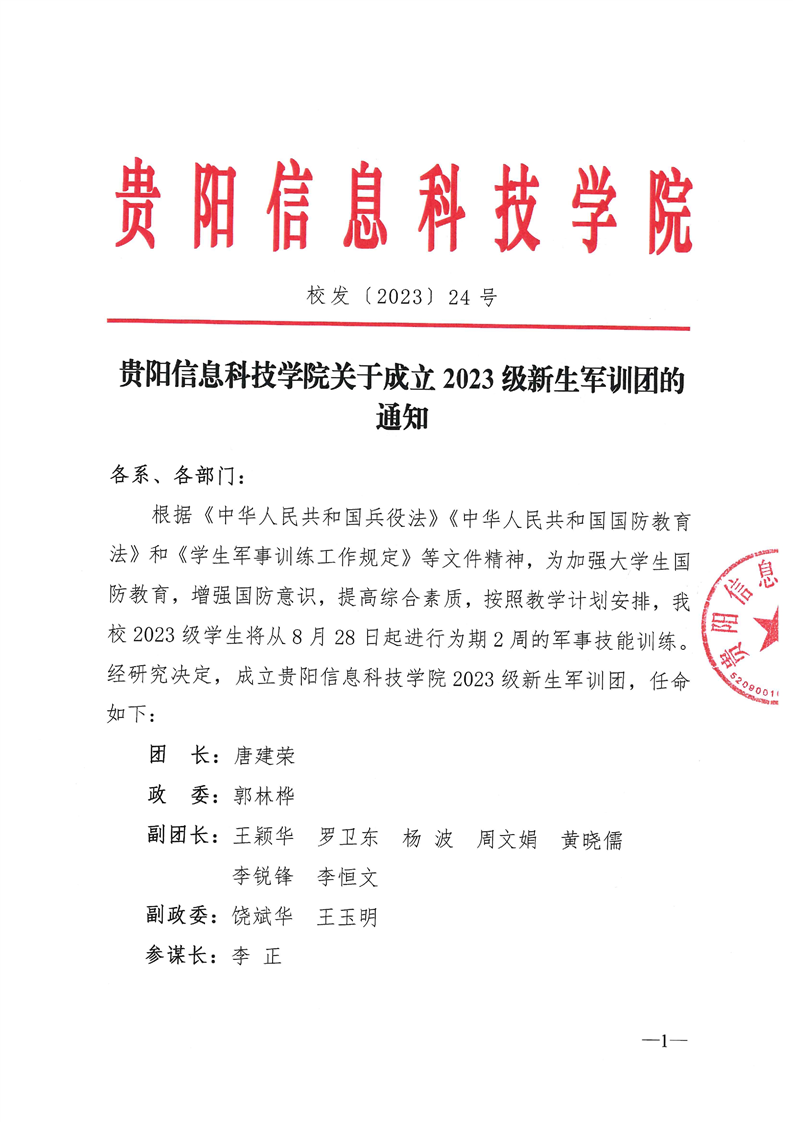 关于成立Beat365唯一官方网站2023级新生军训团的通知