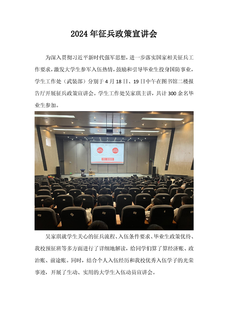 学校召开2024 年征兵政策宣讲会
