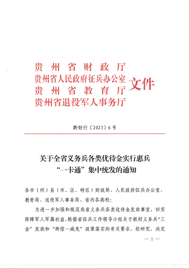 关于全省义务兵各类优待金实行惠兵一卡通集中统发的通知