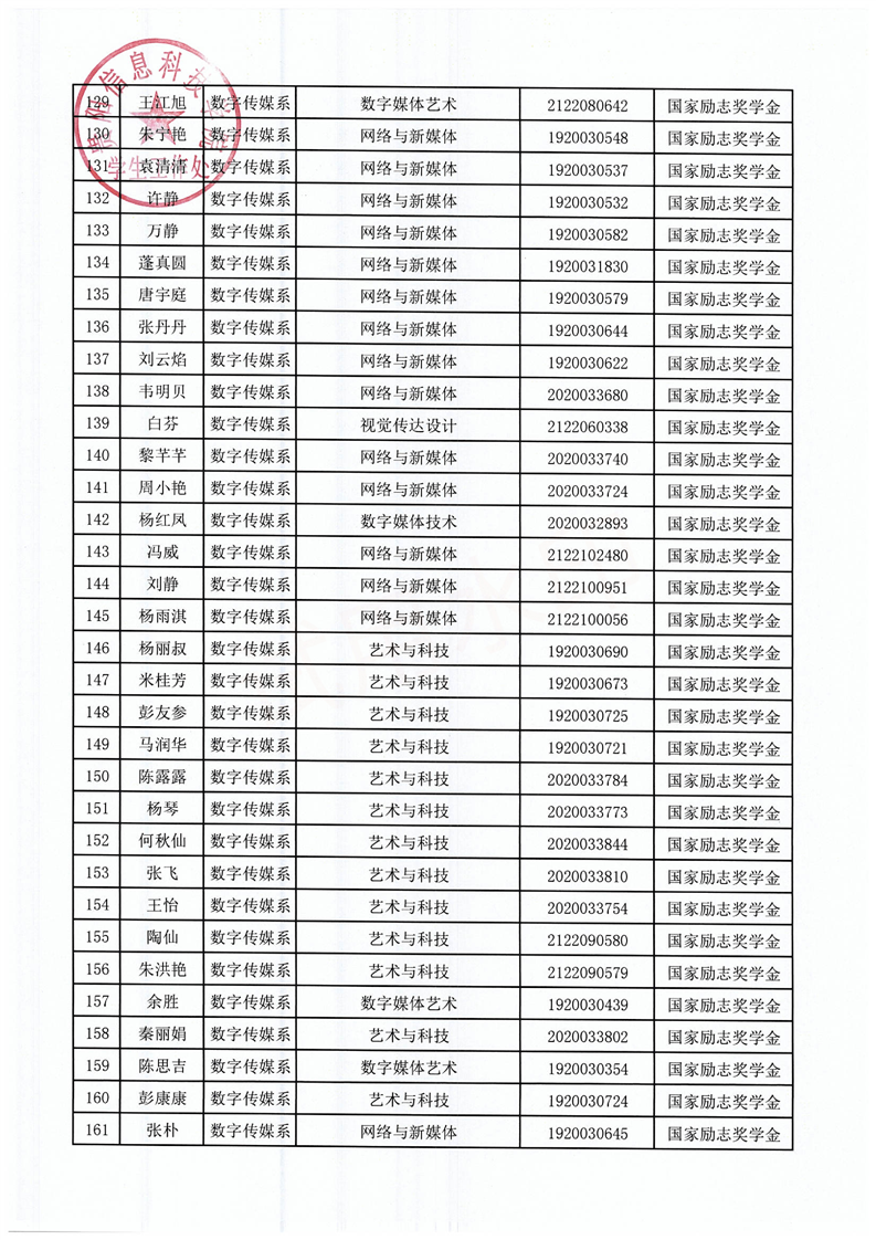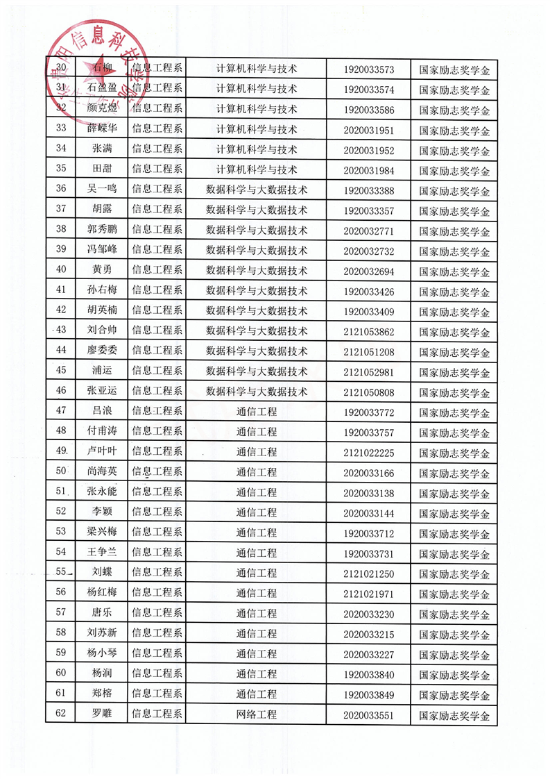 关于拟获2021-2022学年国家励志奖学金的学生名单公示
