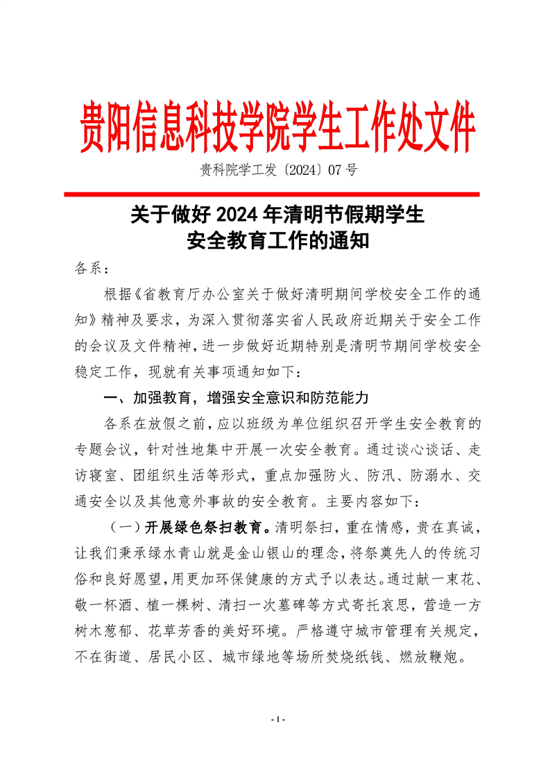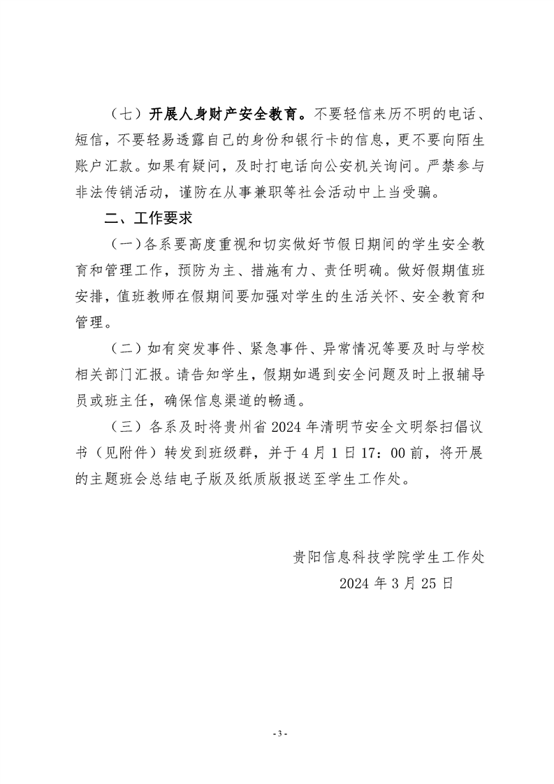 关于做好2024年清明节假期学生安全教育工作的通知
