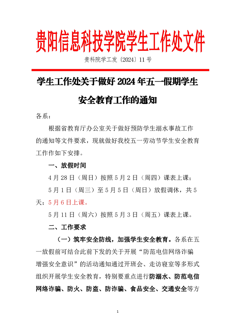 关于做好2024年五一假期学生安全教育工作的通知
