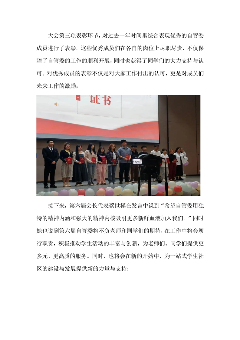 “辞旧铭过往,迎新创辉煌” 学生自我管理委员会第六届换届大会暨表彰大会圆满举行