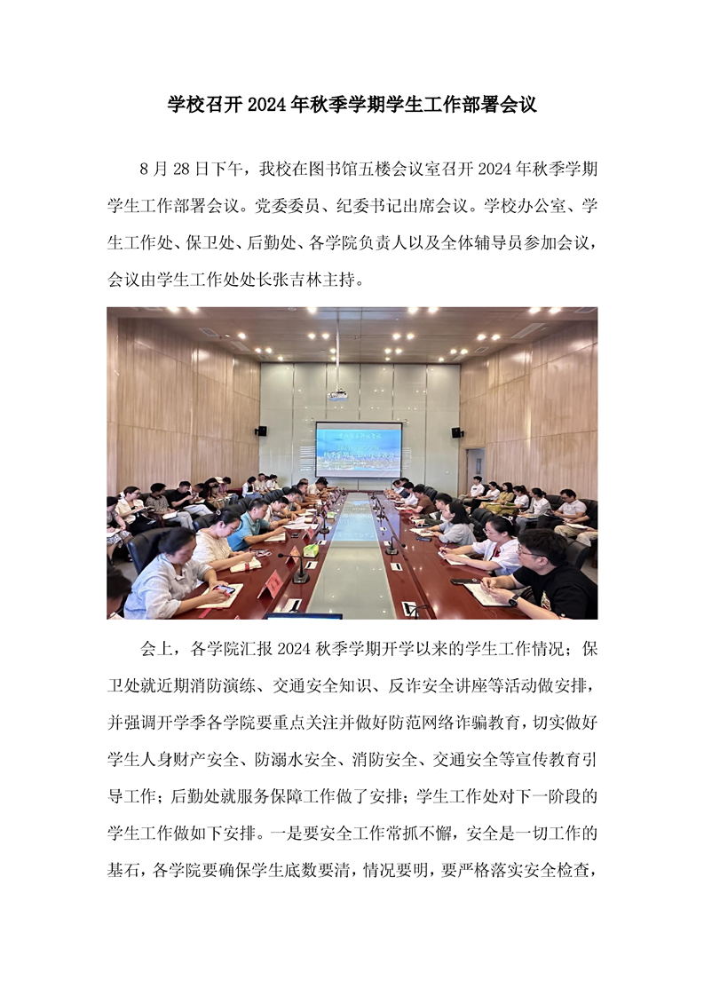 学校召开2024年秋季学期学生工作部署会议