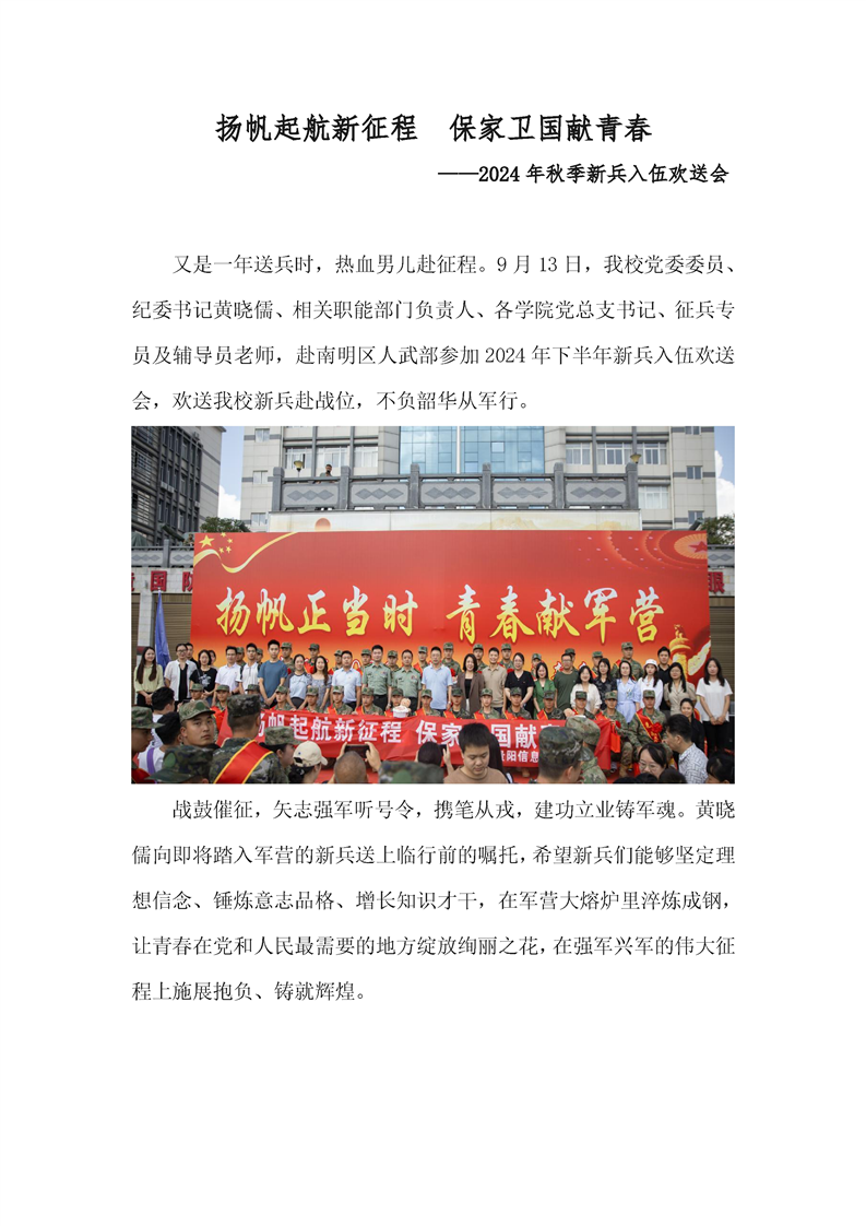 扬帆起航新征程,保家卫国献青春——2024年秋季新兵入伍欢送会