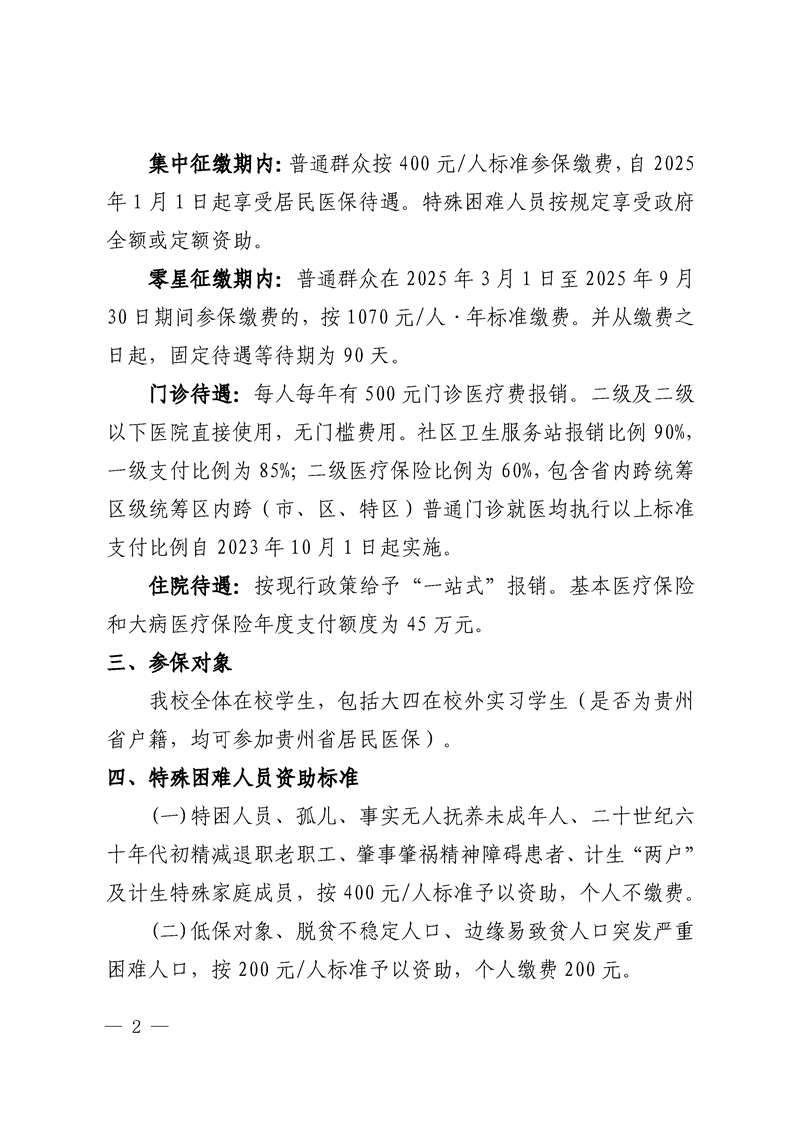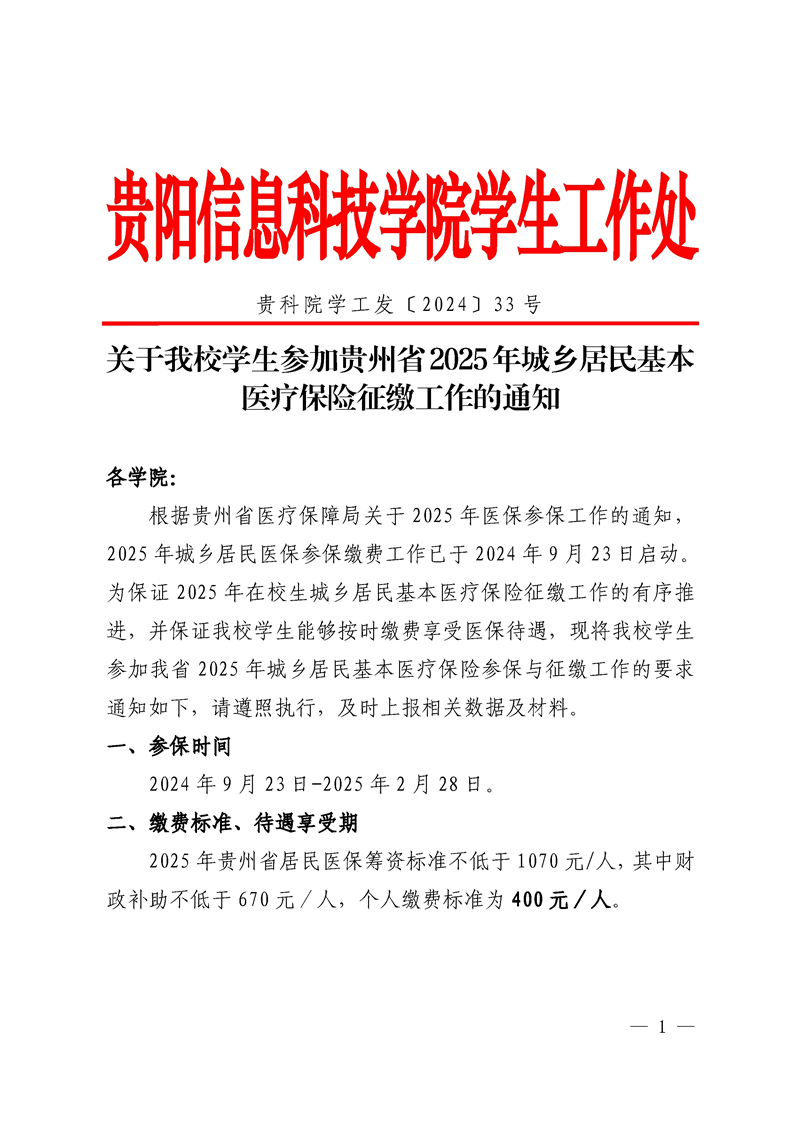 关于Beat365学生参加贵州省2025年城乡居民基本医疗保险征缴工作的通知