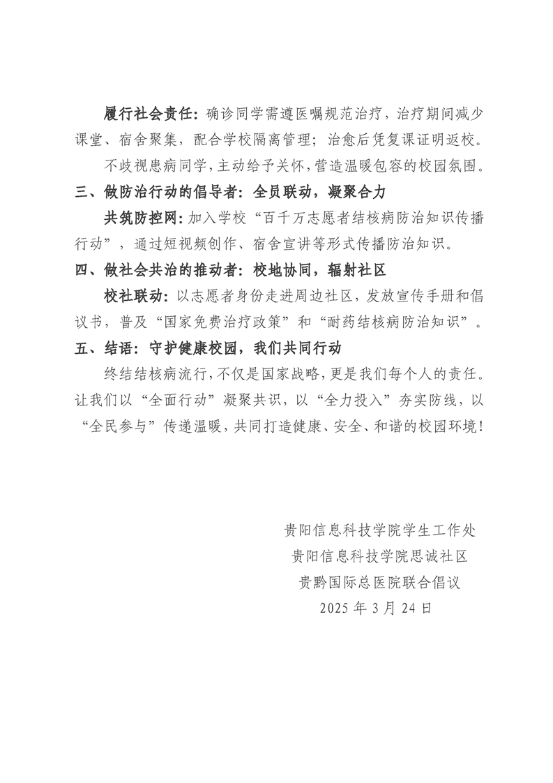 “全面行动 全力投入 全民参与 终结结核”倡议书