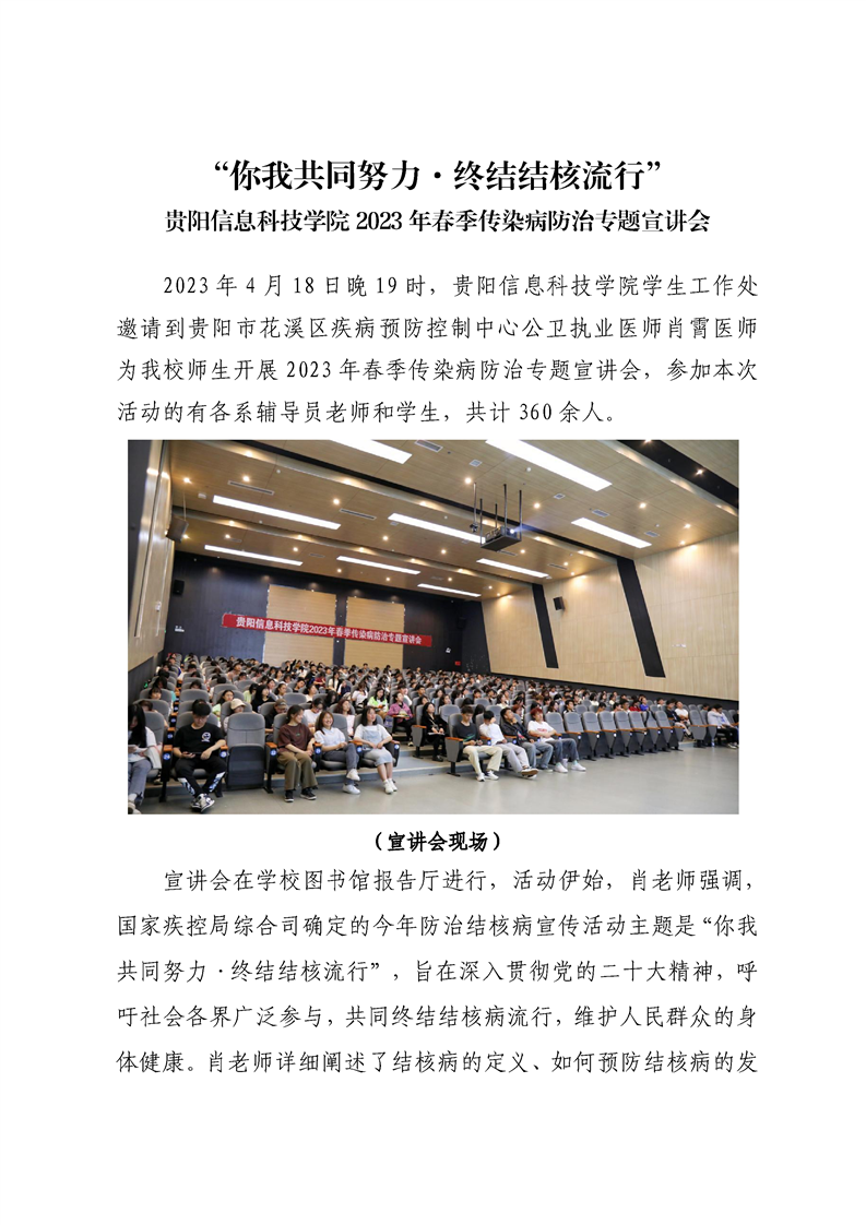 “你我共同努力·终结结核流行”Beat365唯一官方网站2023年春季传染病防治专题宣讲会