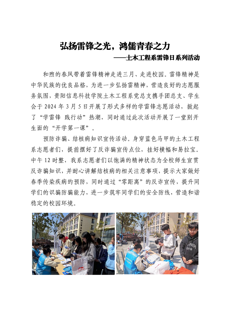 弘扬雷锋之光,鸿儒青春之力 ——土木工程系雷锋日系列活动