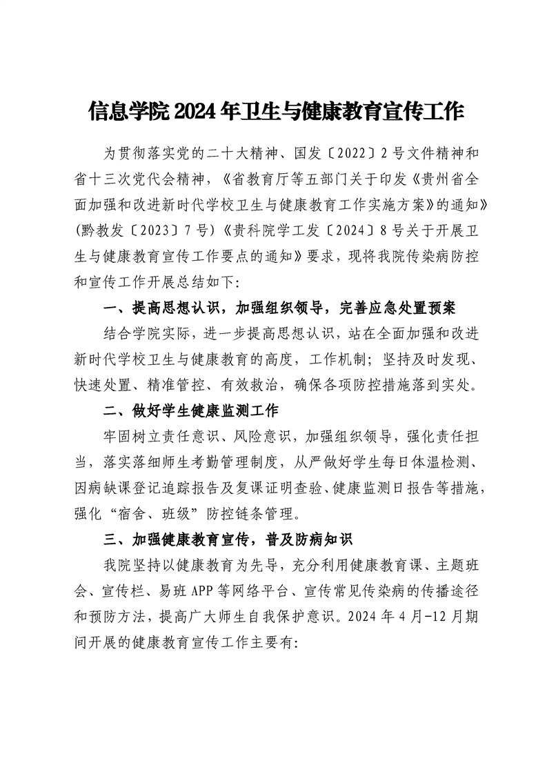 信息学院 2024 年卫生与健康教育宣传工作