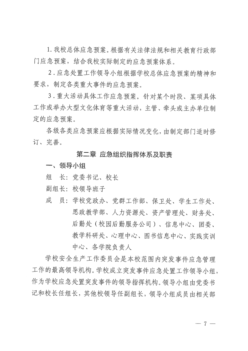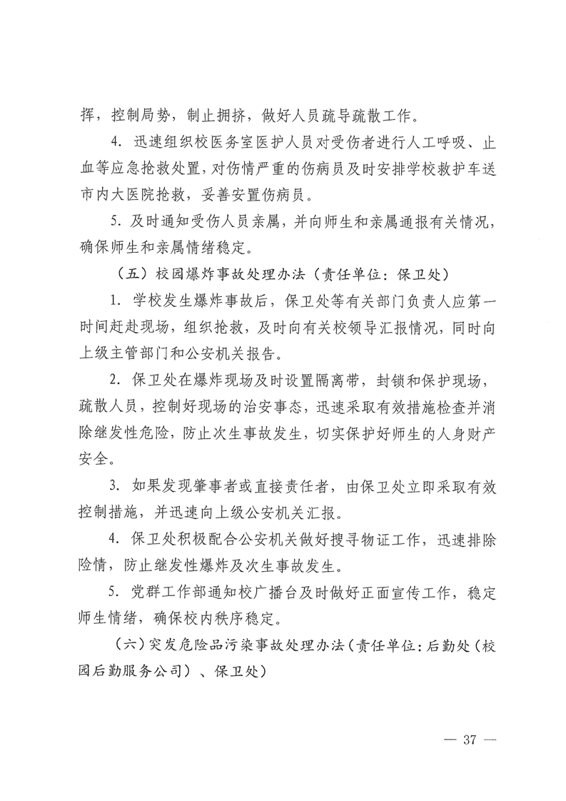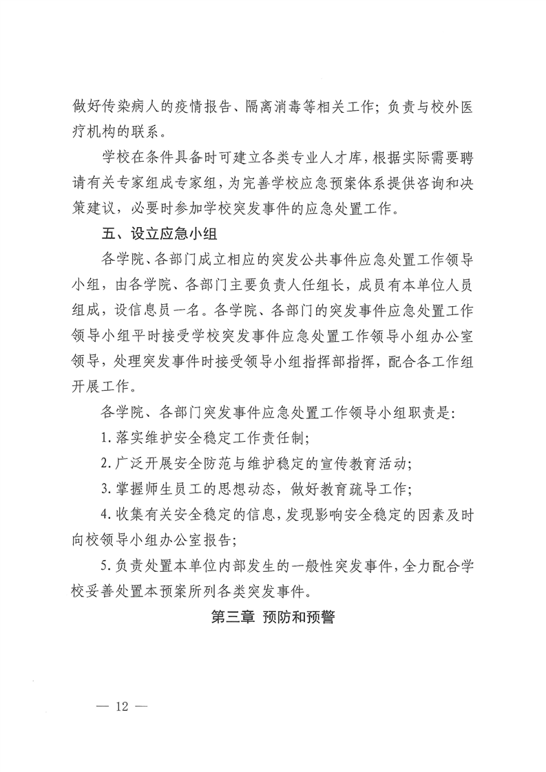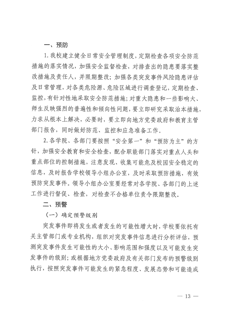 关于修订《Beat365唯一官方网站校园安全突发事件应急预案(试行)》的通知