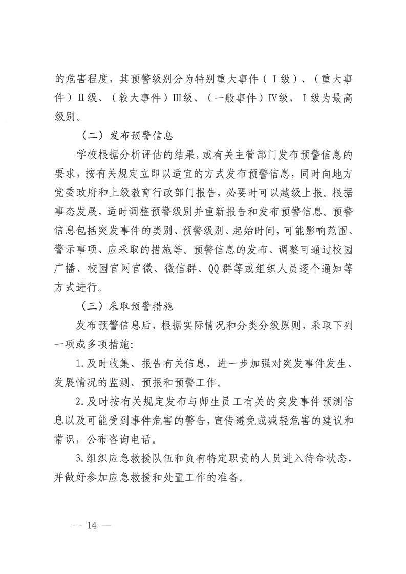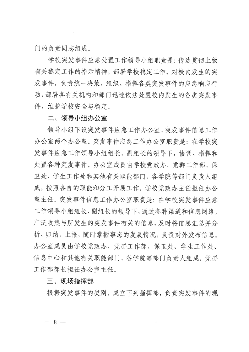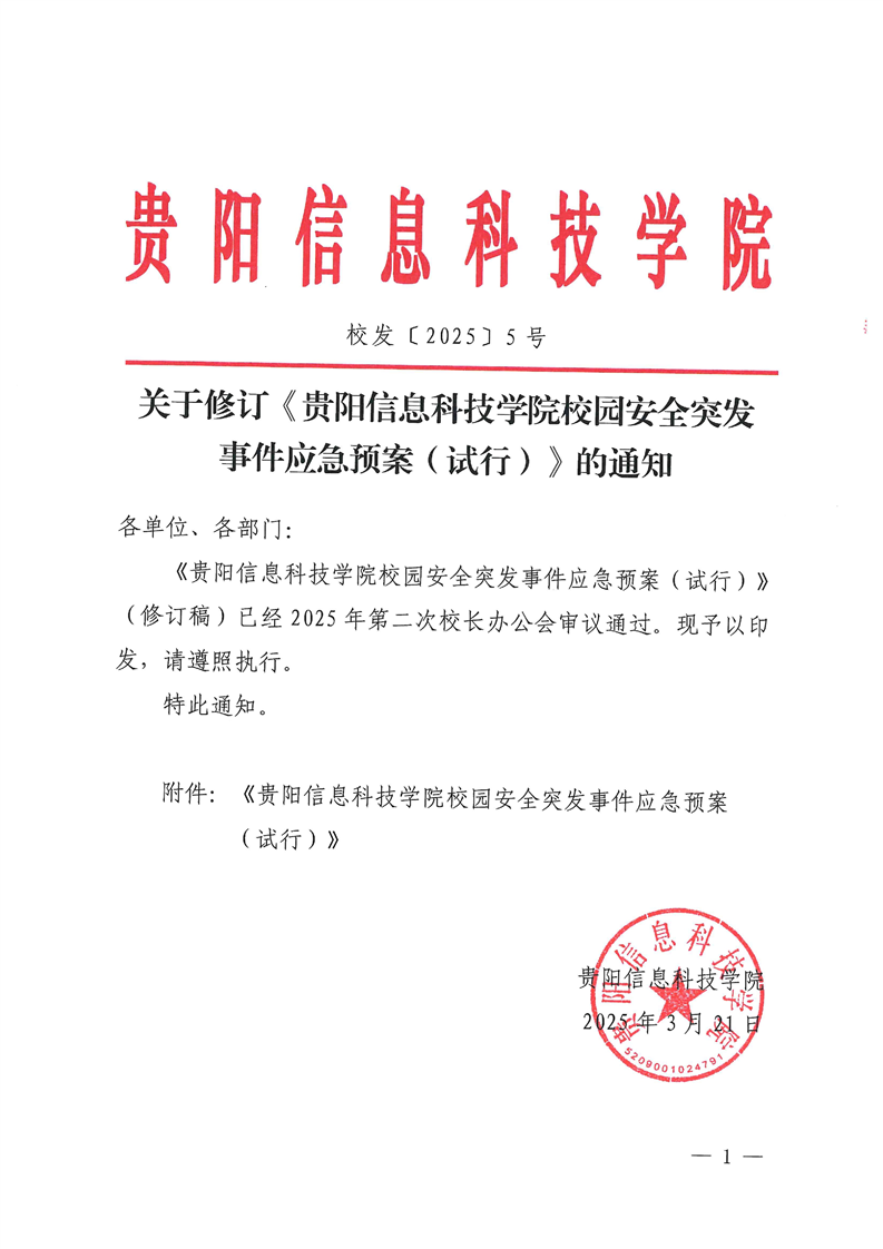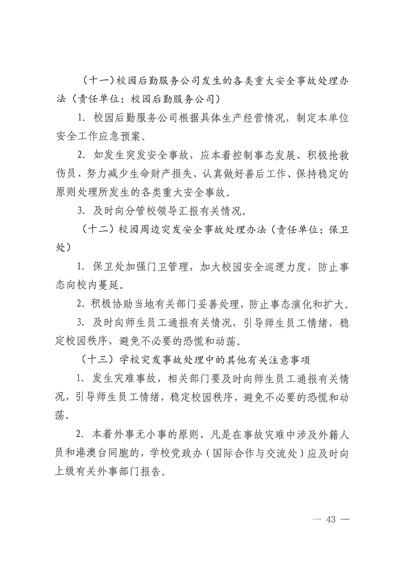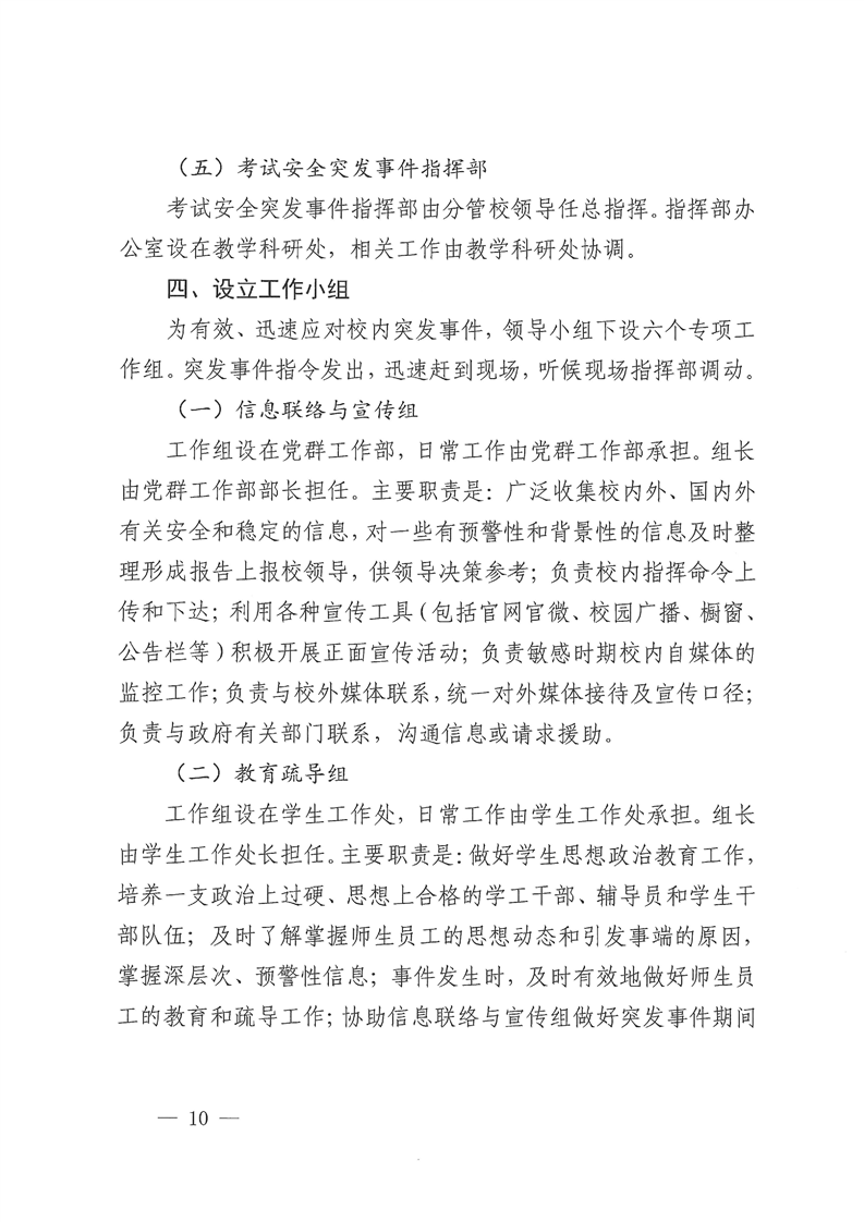 关于修订《Beat365唯一官方网站校园安全突发事件应急预案(试行)》的通知