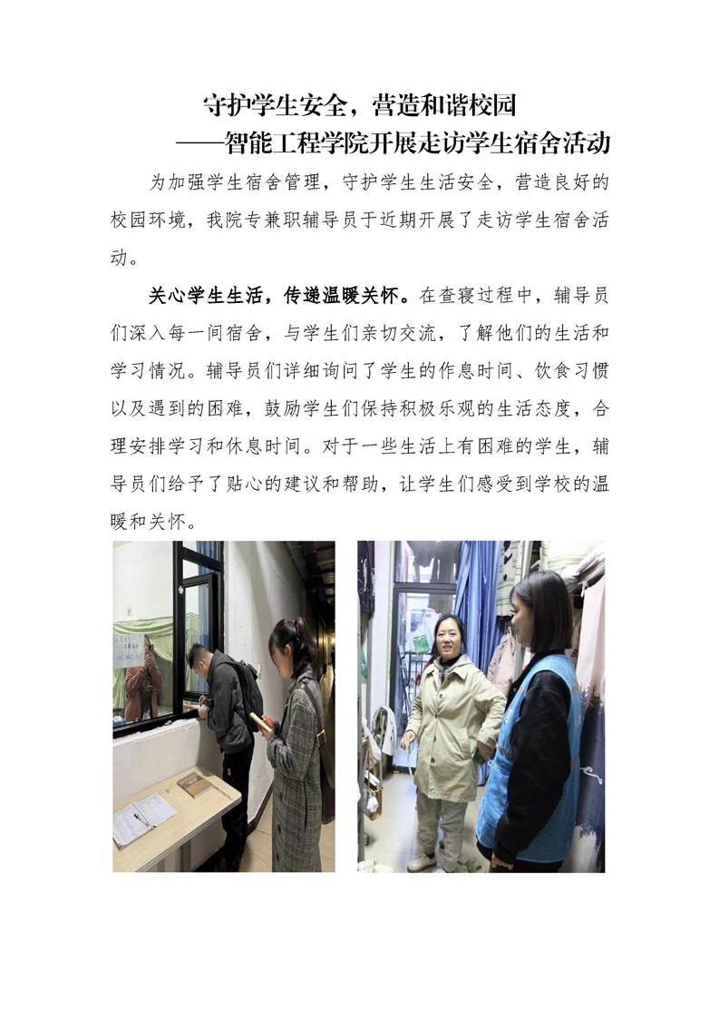 守护学生安全,营造和谐校园 ——智能工程学院开展走访学生宿舍活动