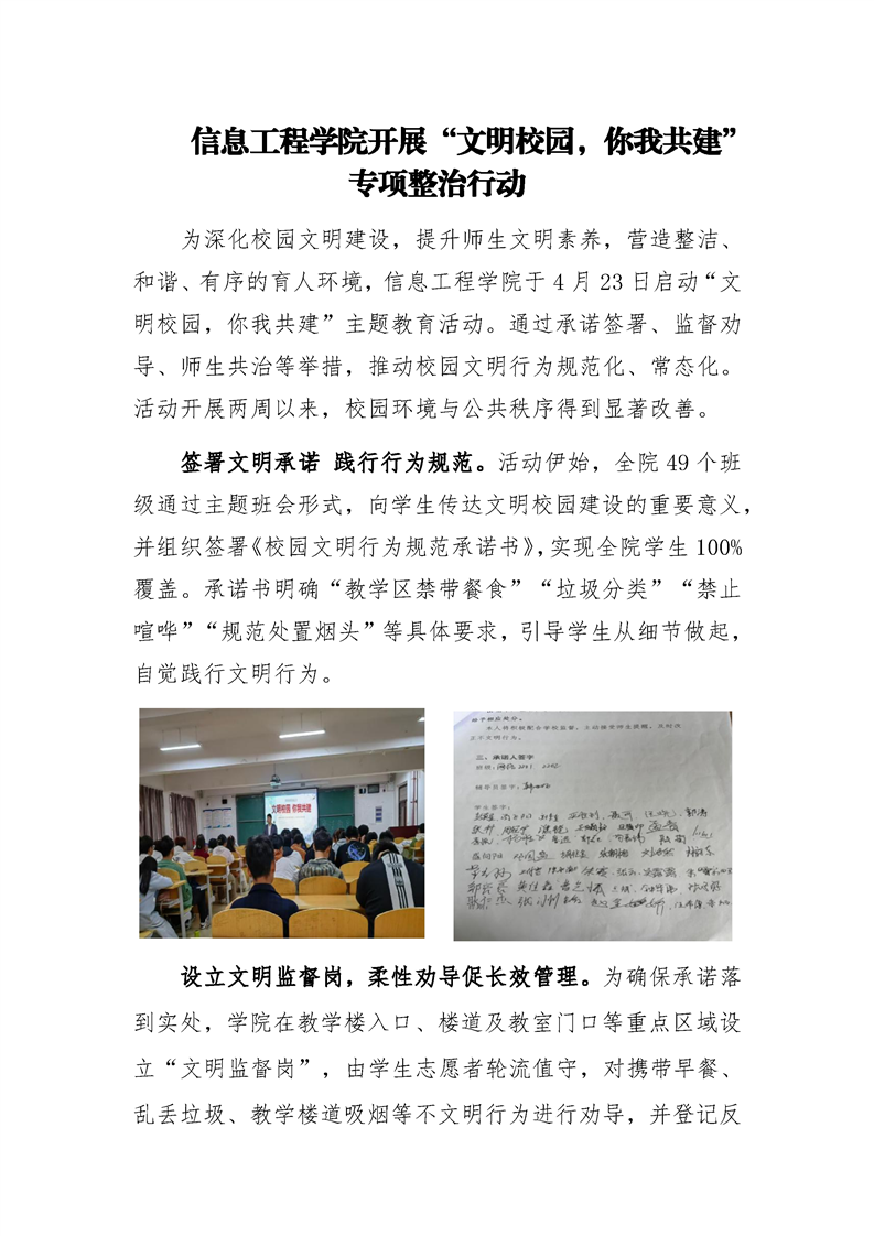 信息工程学院开展“文明校园,你我共建”专项整治行动