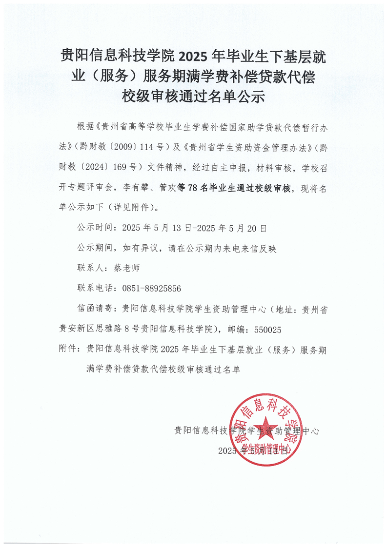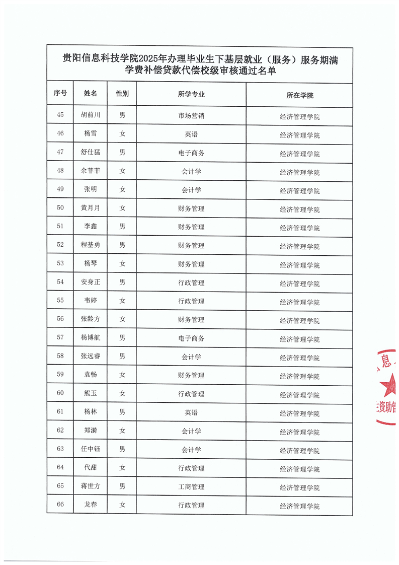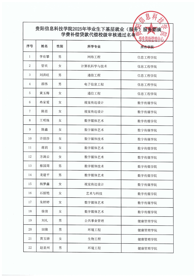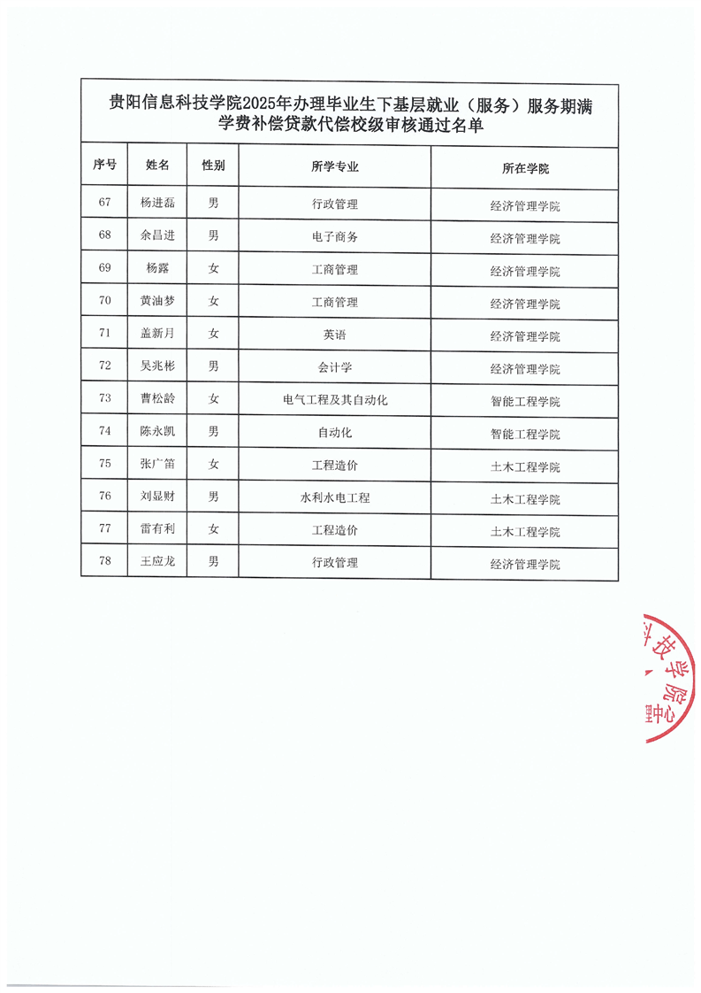 Beat365唯一官方网站2025年毕业生下基层就业(服务)服务期满学费补偿贷款代偿 校级审核通过名单公示