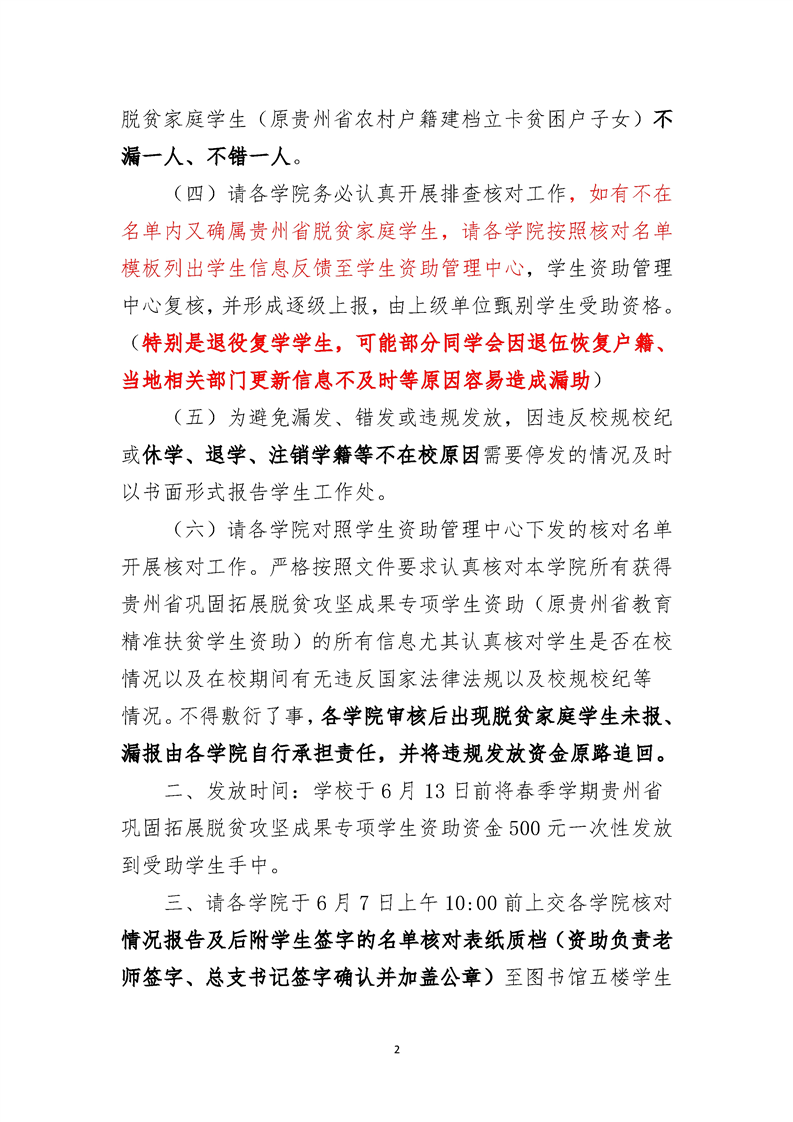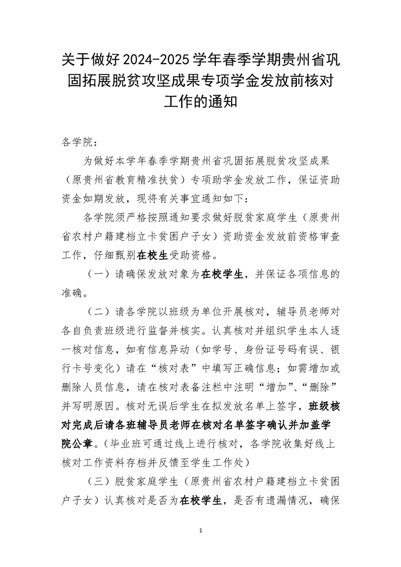 关于做好2024-2025学年春季学期贵州省巩固拓展脱贫攻坚成果专项学金发放前核对工作的通知