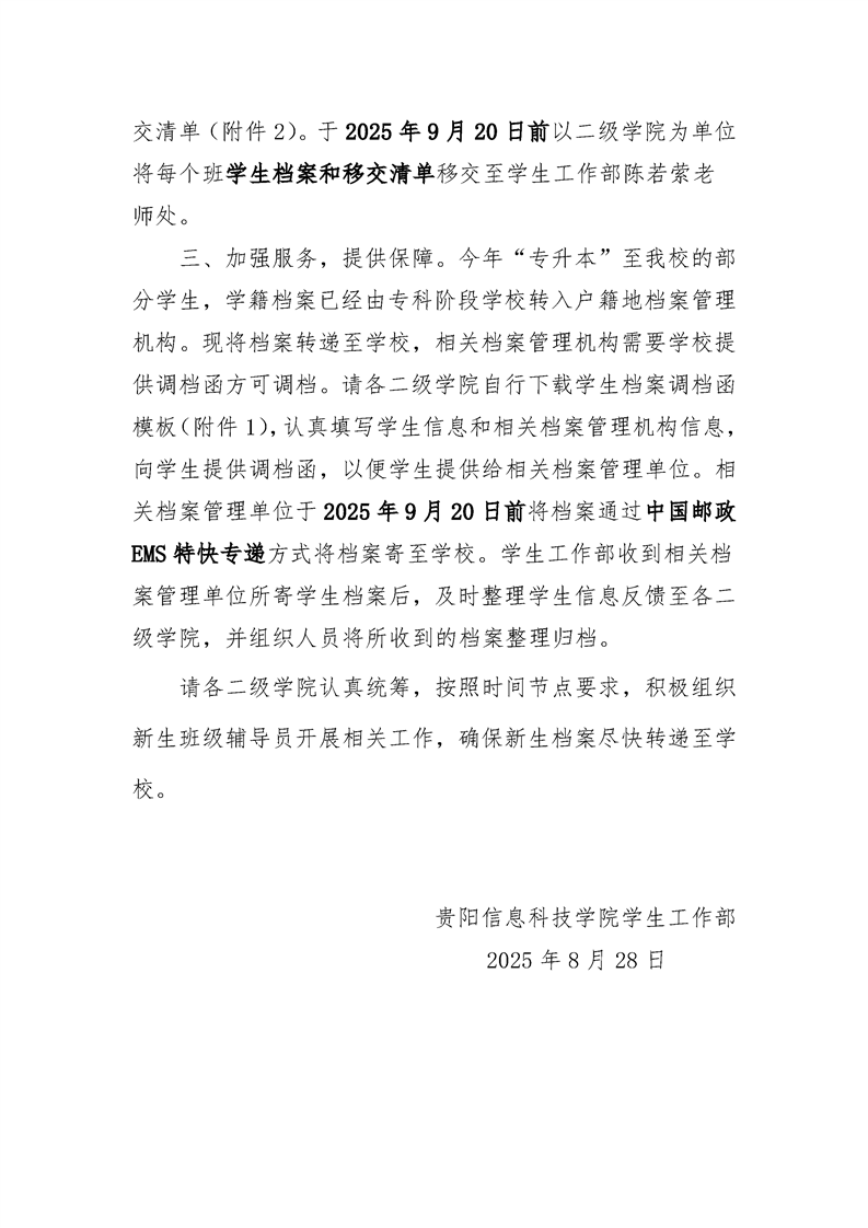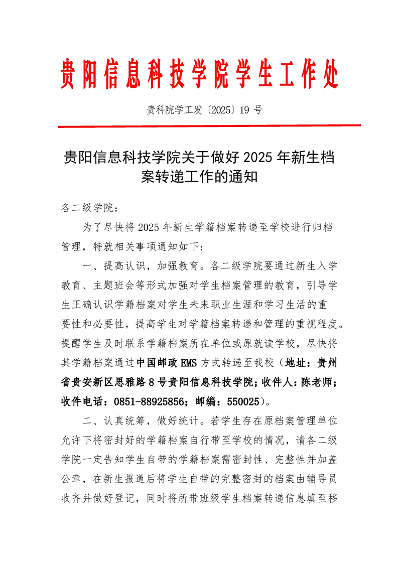 Beat365唯一官方网站关于做好2025年新生档案转递工作的通知