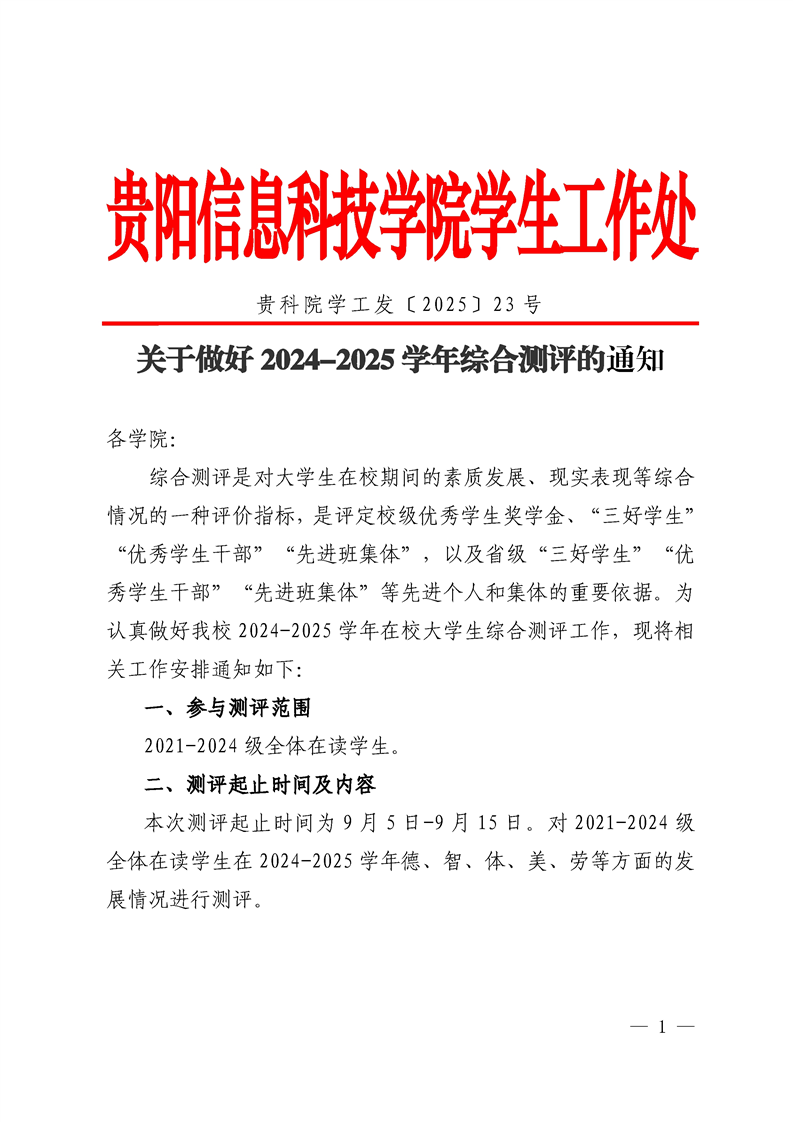 关于做好2024-2025学年综合测评的通知