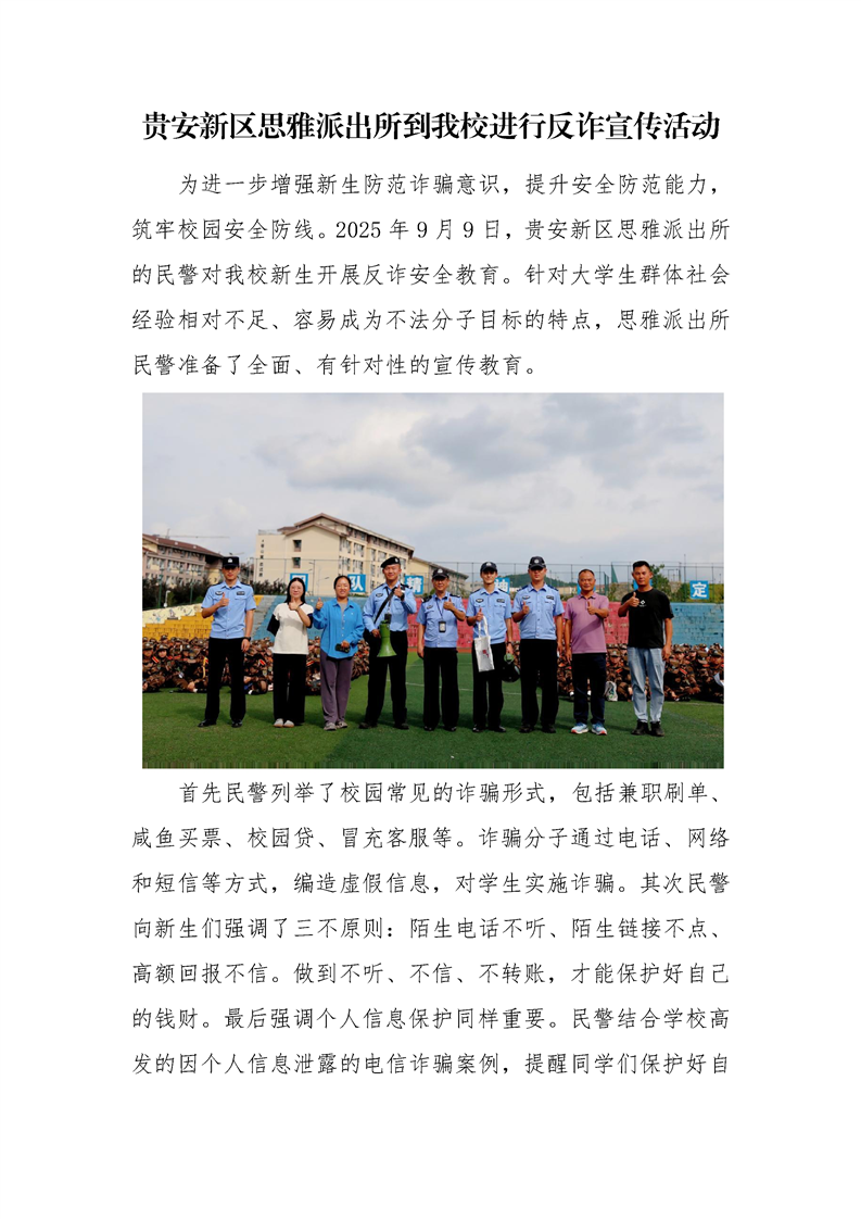 贵安新区思雅派出所到Beat365进行反诈宣传活动