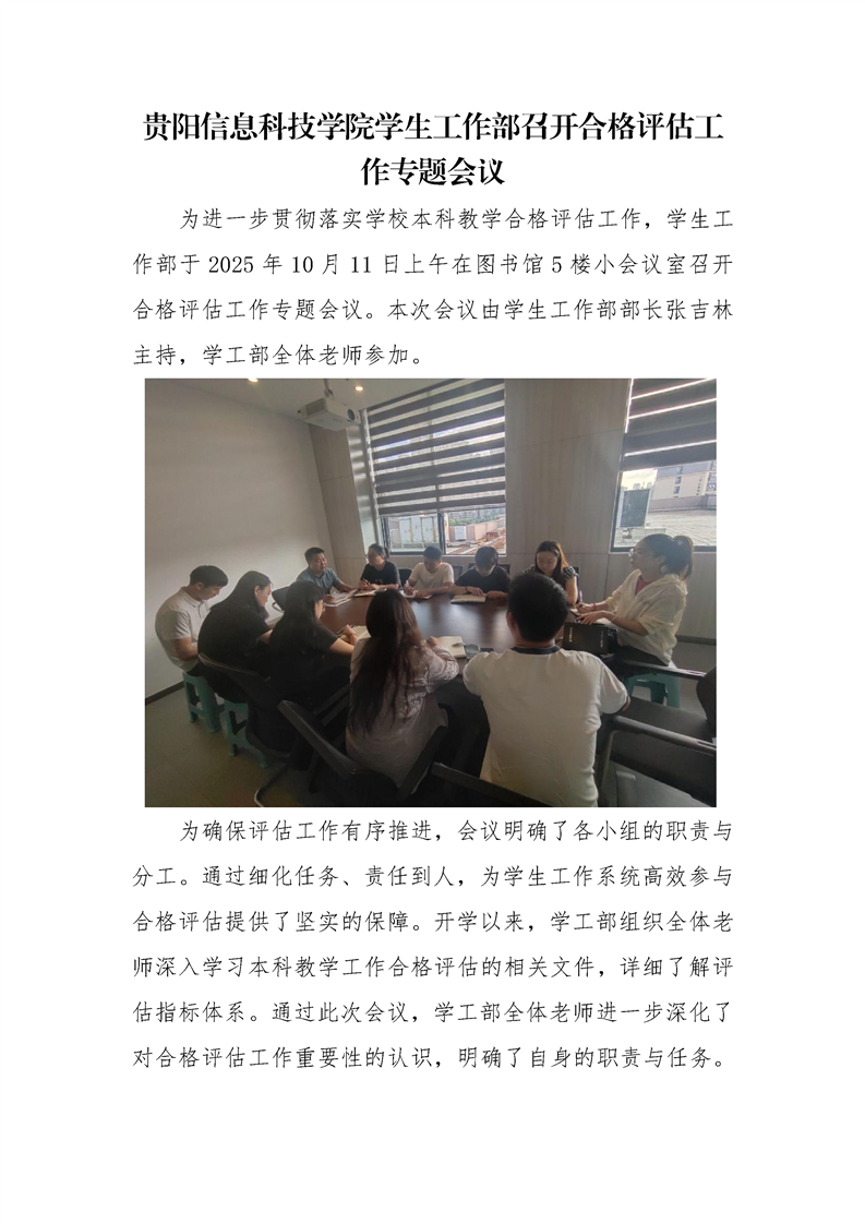Beat365唯一官方网站学生工作部召开合格评估工作专题会议