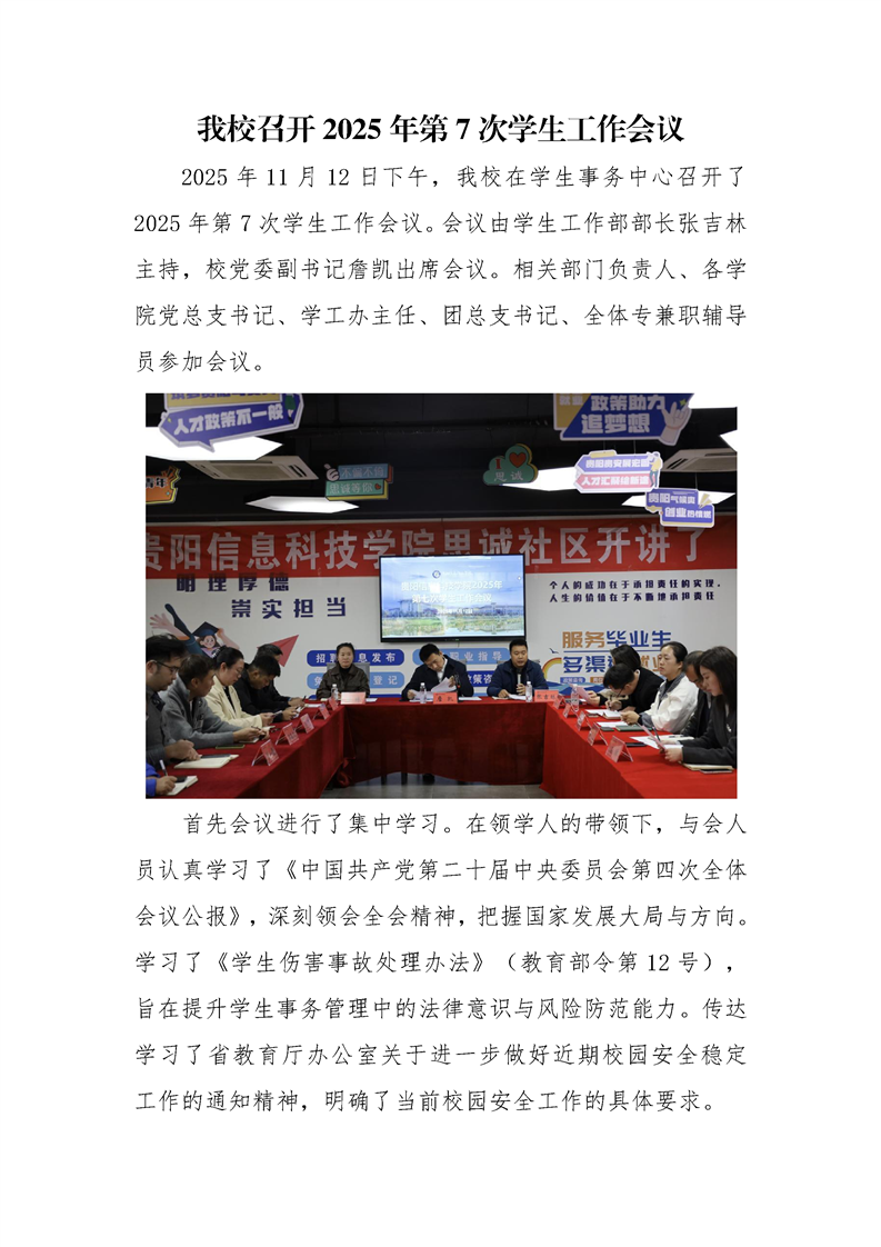 Beat365召开2025年第7次学生工作会议