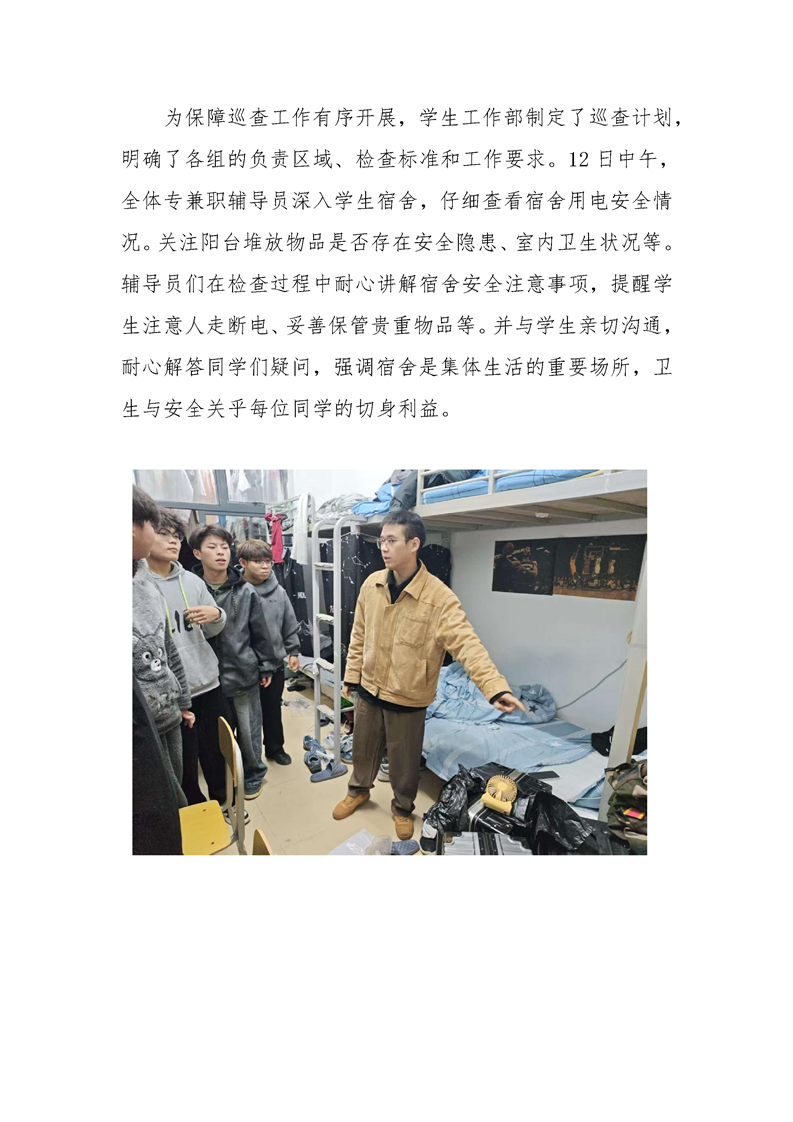 筑牢冬季安全防线,Beat365开展全体辅导员寝室安全大检查