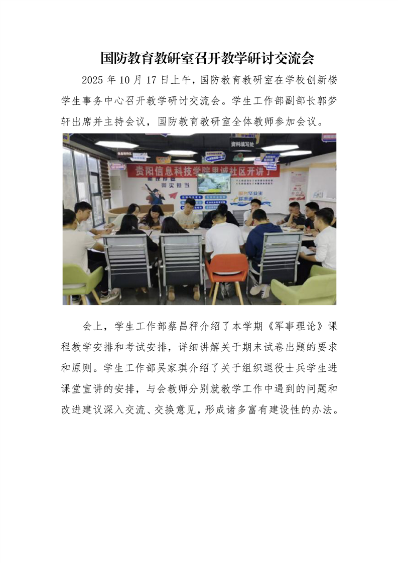 国防教育教研室召开教学研讨交流会