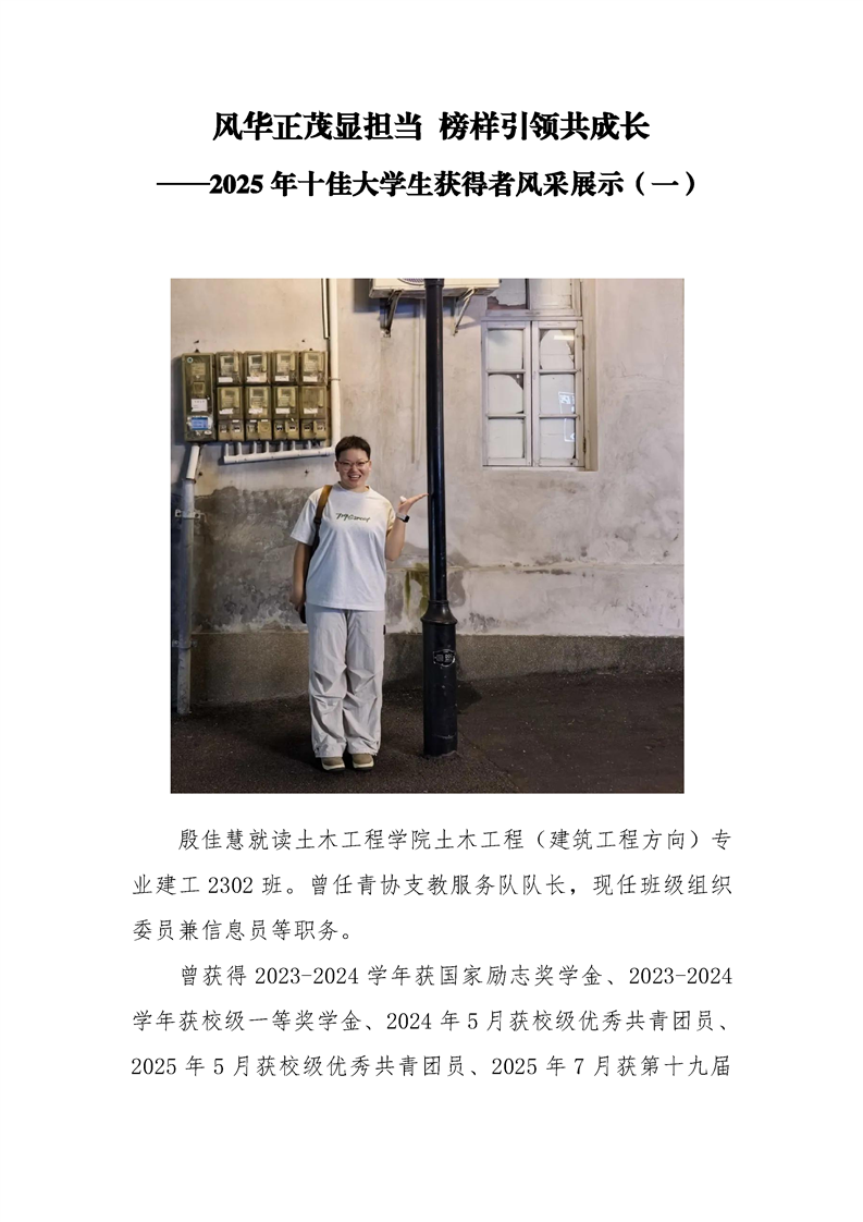 风华正茂显担当 榜样引领共成长 ——2025年十佳大学生获得者风采展示(一)