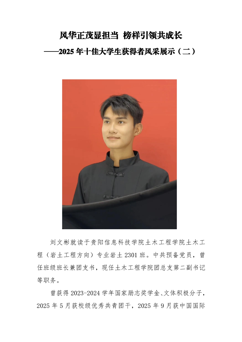 风华正茂显担当 榜样引领共成长 ——2025年十佳大学生获得者风采展示(二)