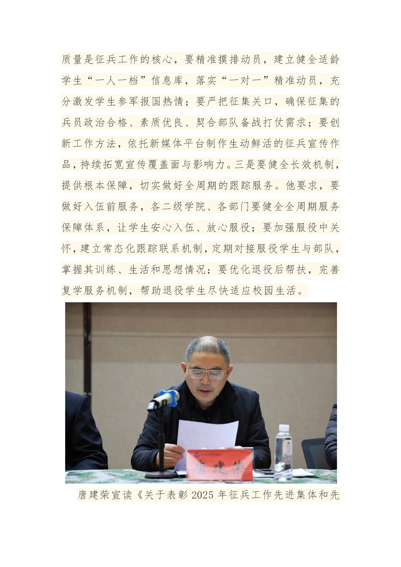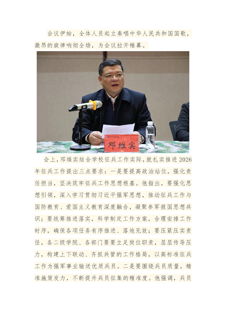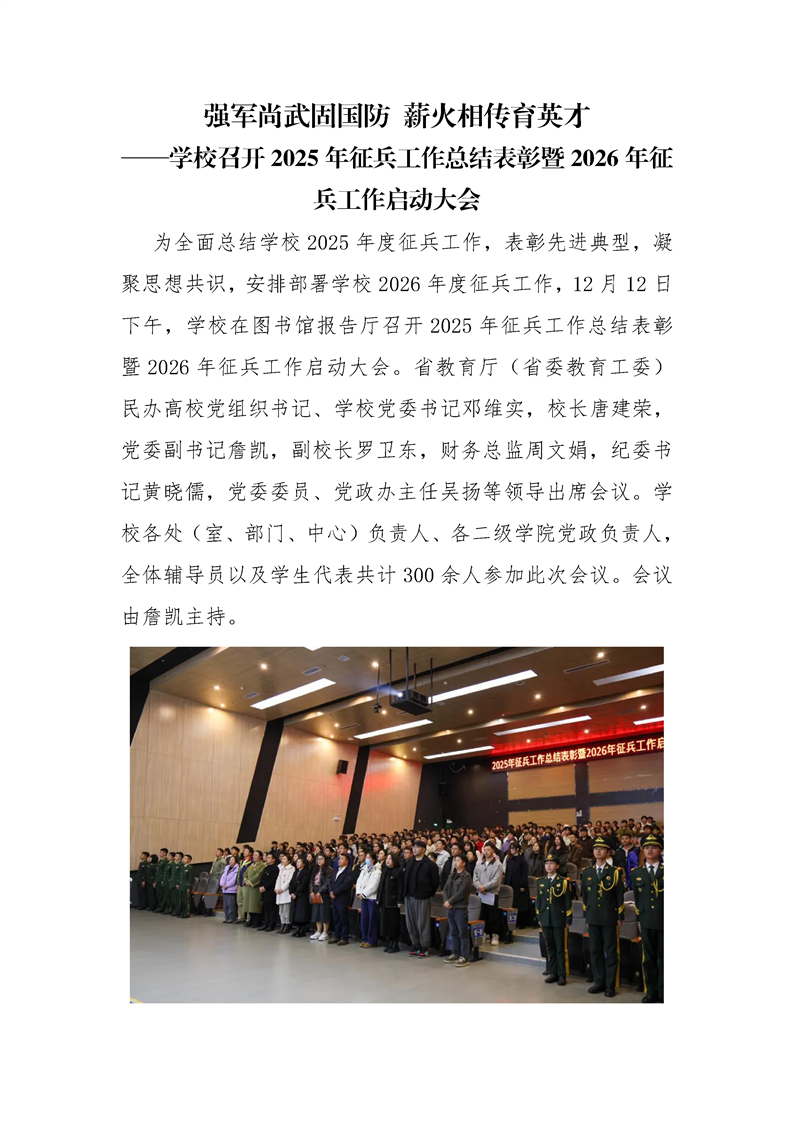 强军尚武固国防 薪火相传育英才 ——学校召开2025年征兵工作总结表彰暨2026年征兵工作启动大会