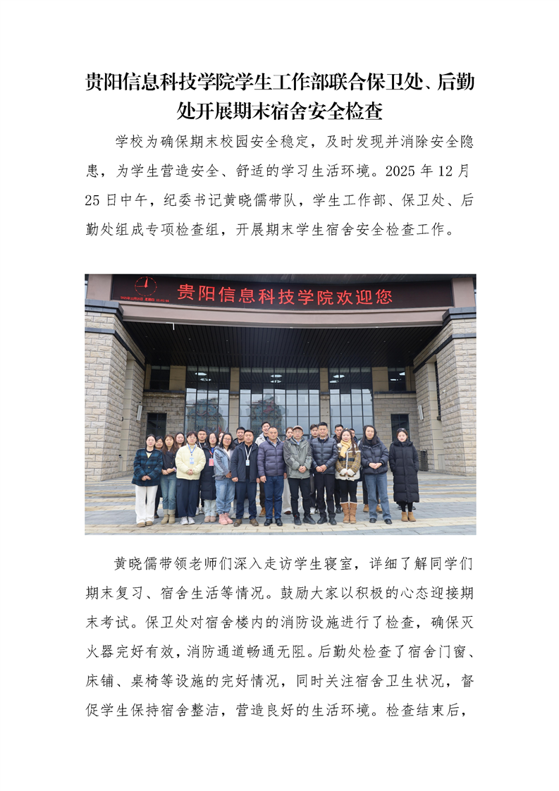 Beat365唯一官方网站学生工作部联合保卫处、后勤处开展期末宿舍安全检查