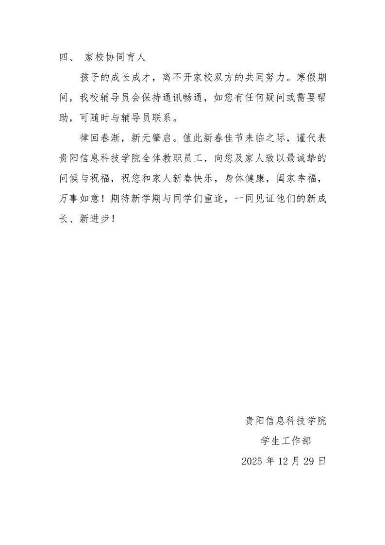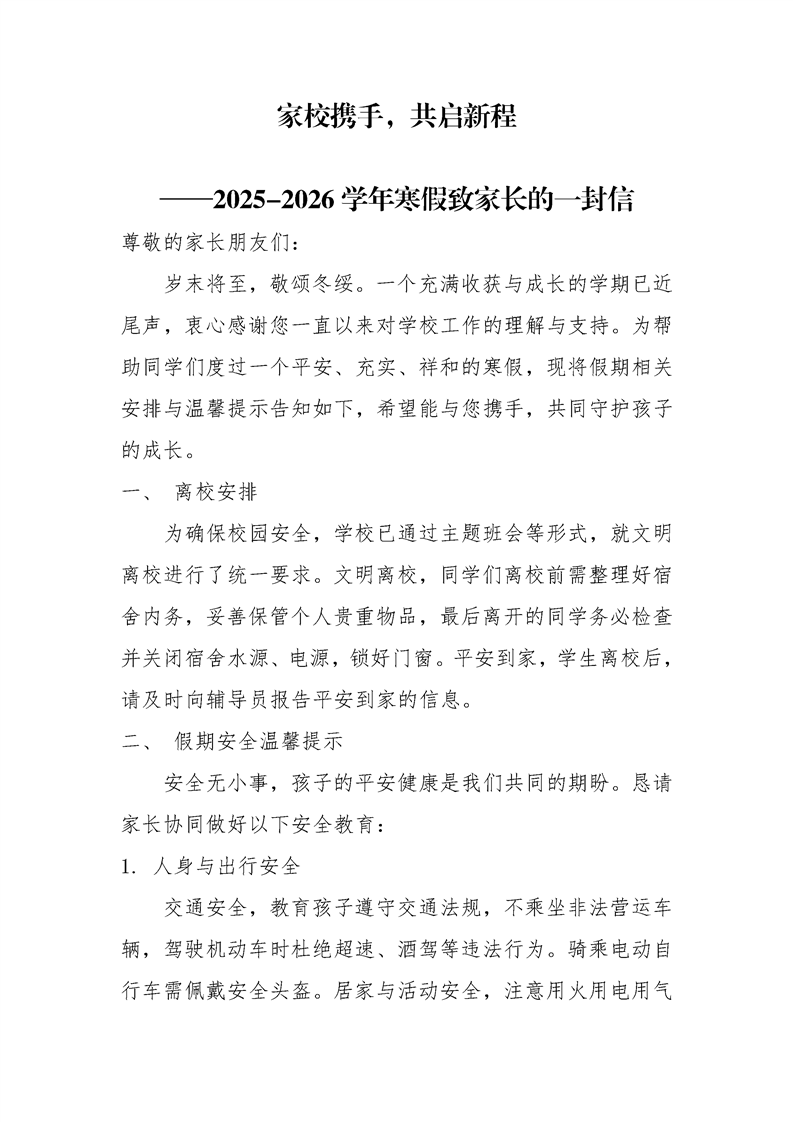 家校携手,共启新程 ——2025-2026学年寒假致家长的一封信