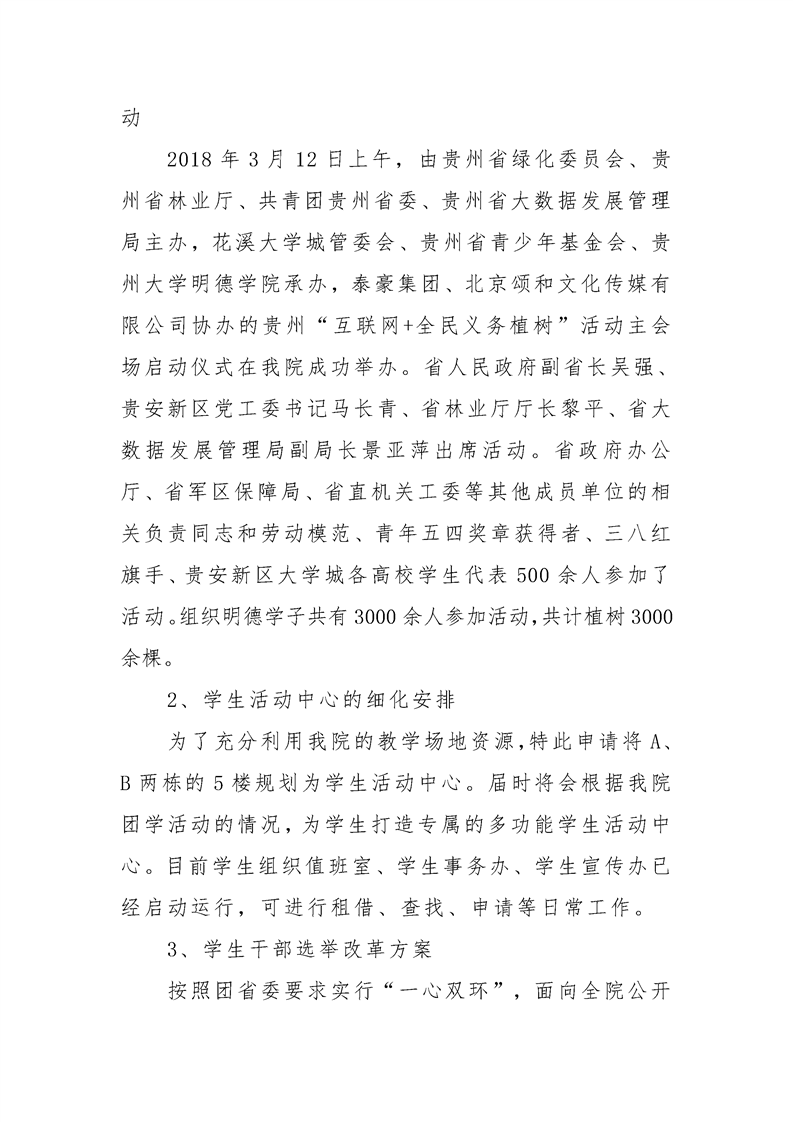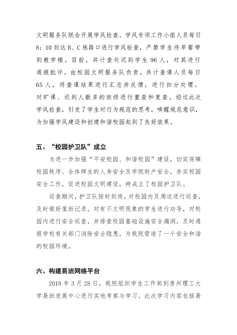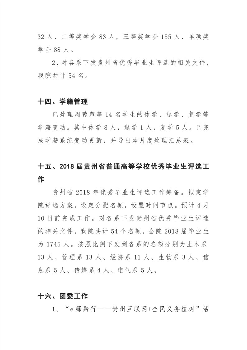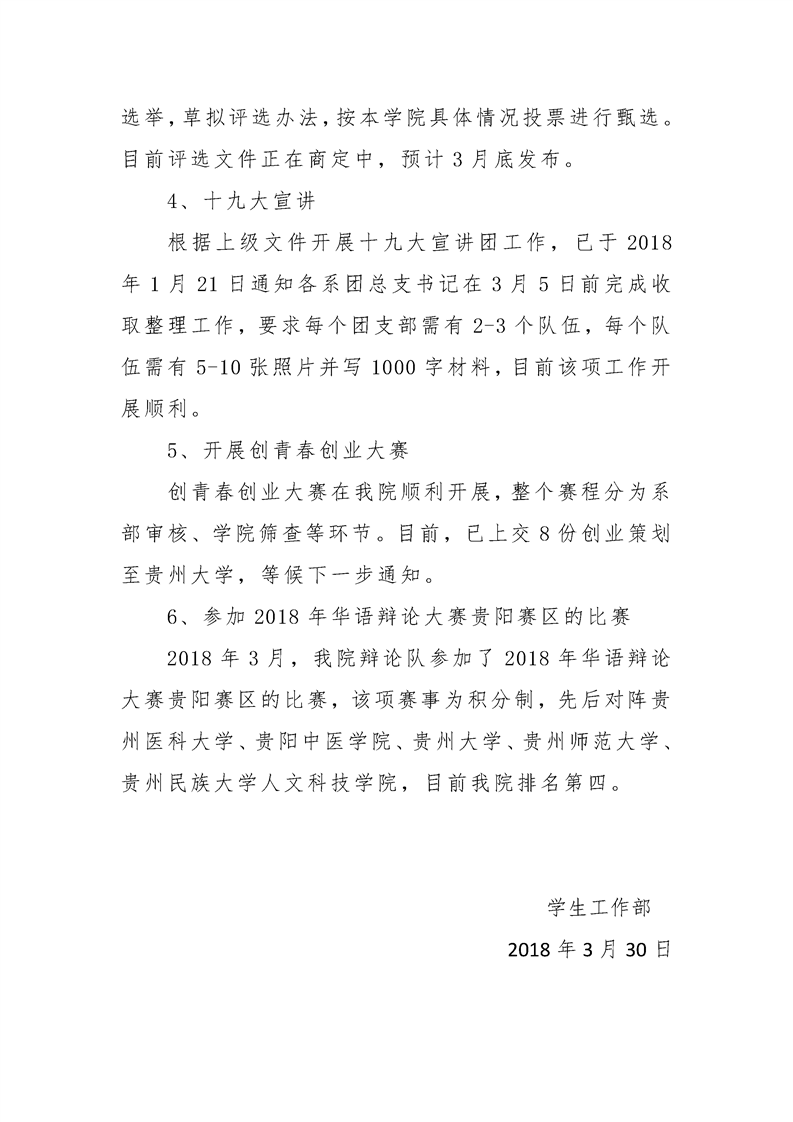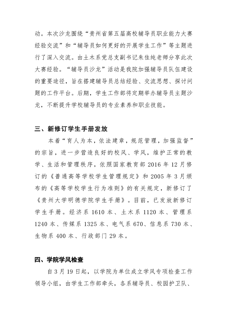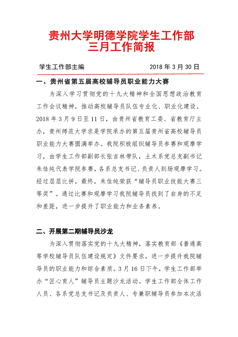 贵州大学明德学院学生工作部三月工作简报