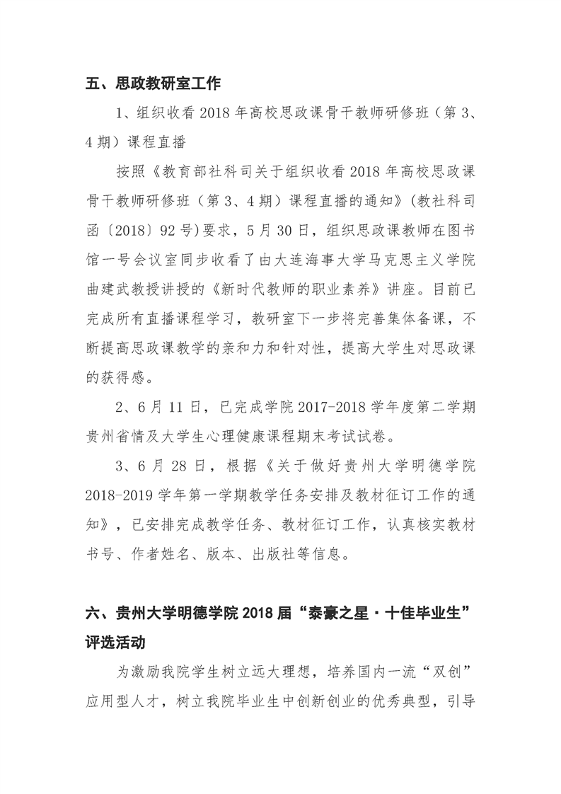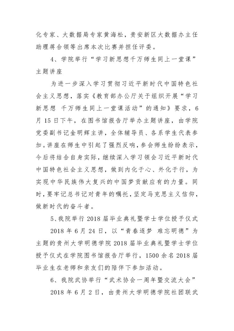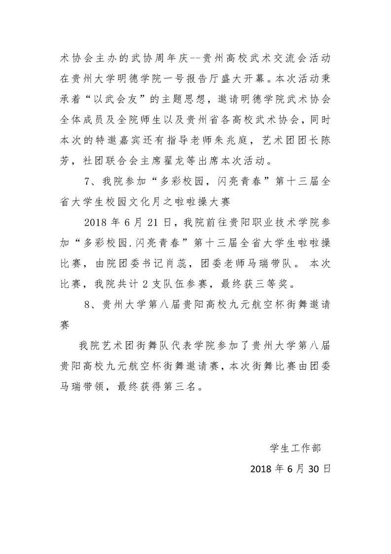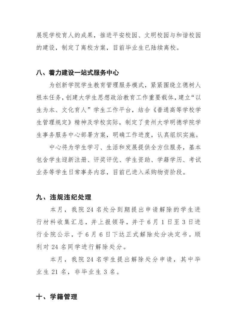 贵州大学明德学院学生工作部六月工作简报