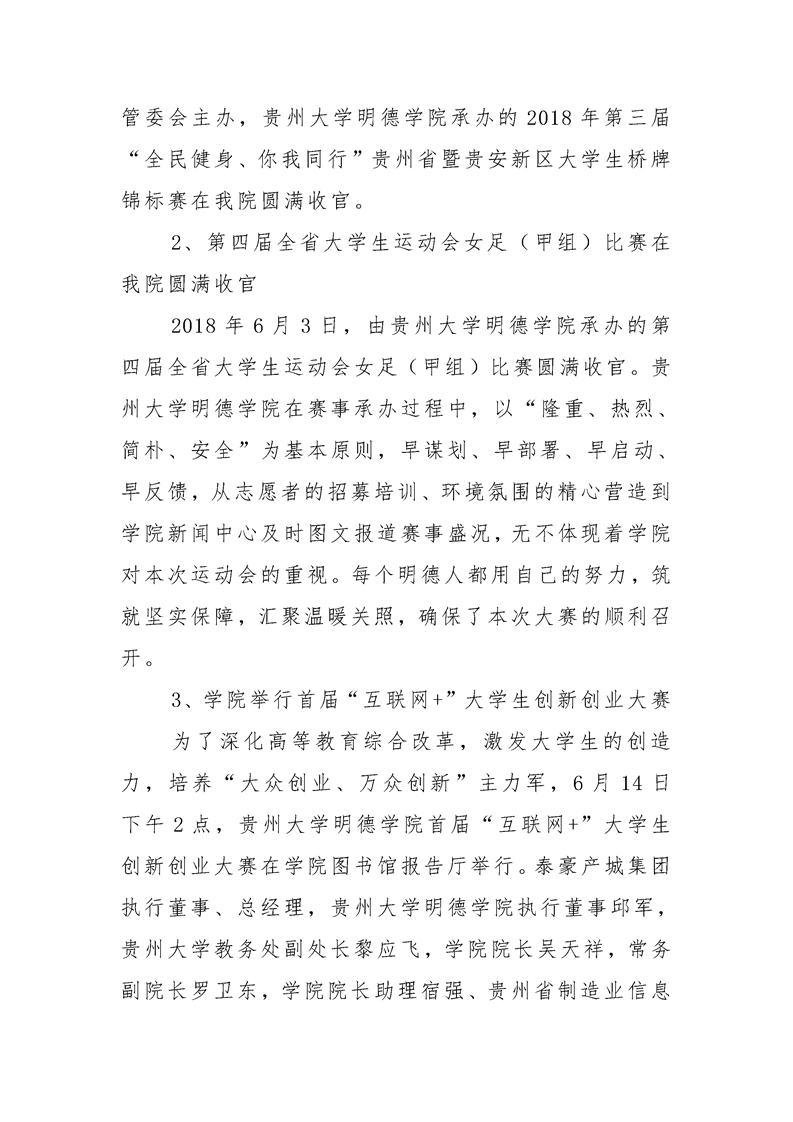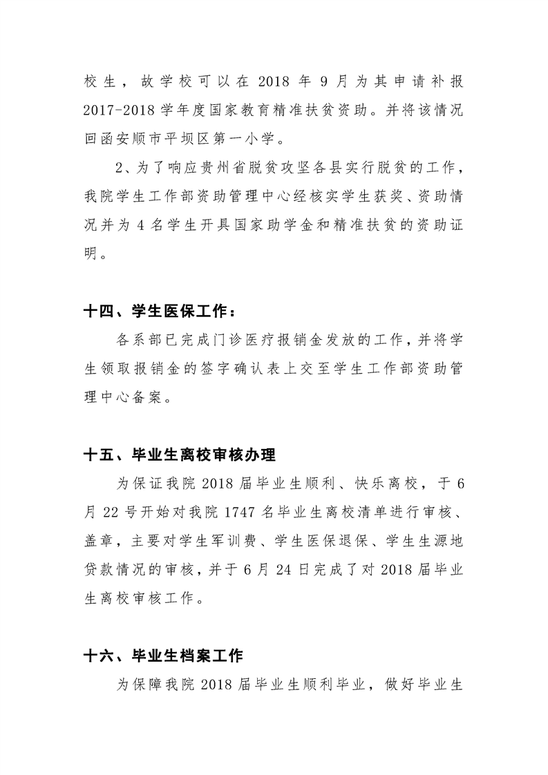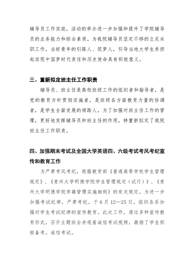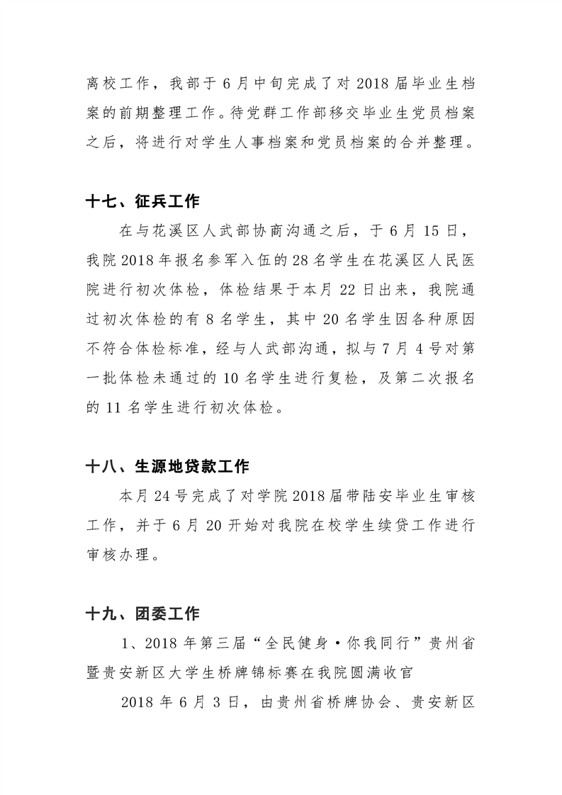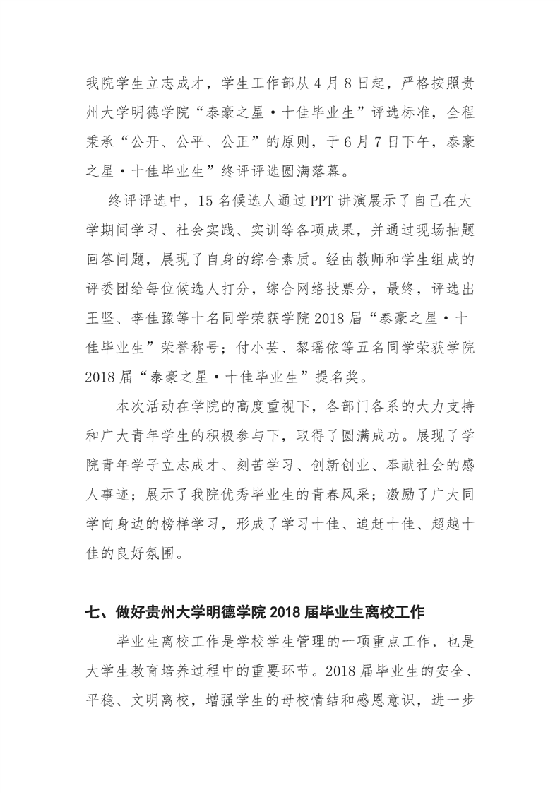 贵州大学明德学院学生工作部六月工作简报