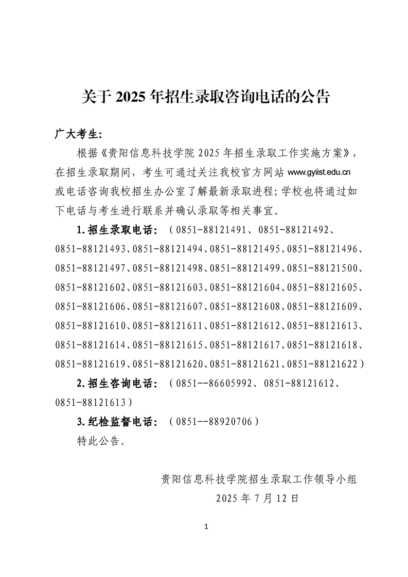 Beat365唯一官方网站关于2025年招生录取咨询电话的公告